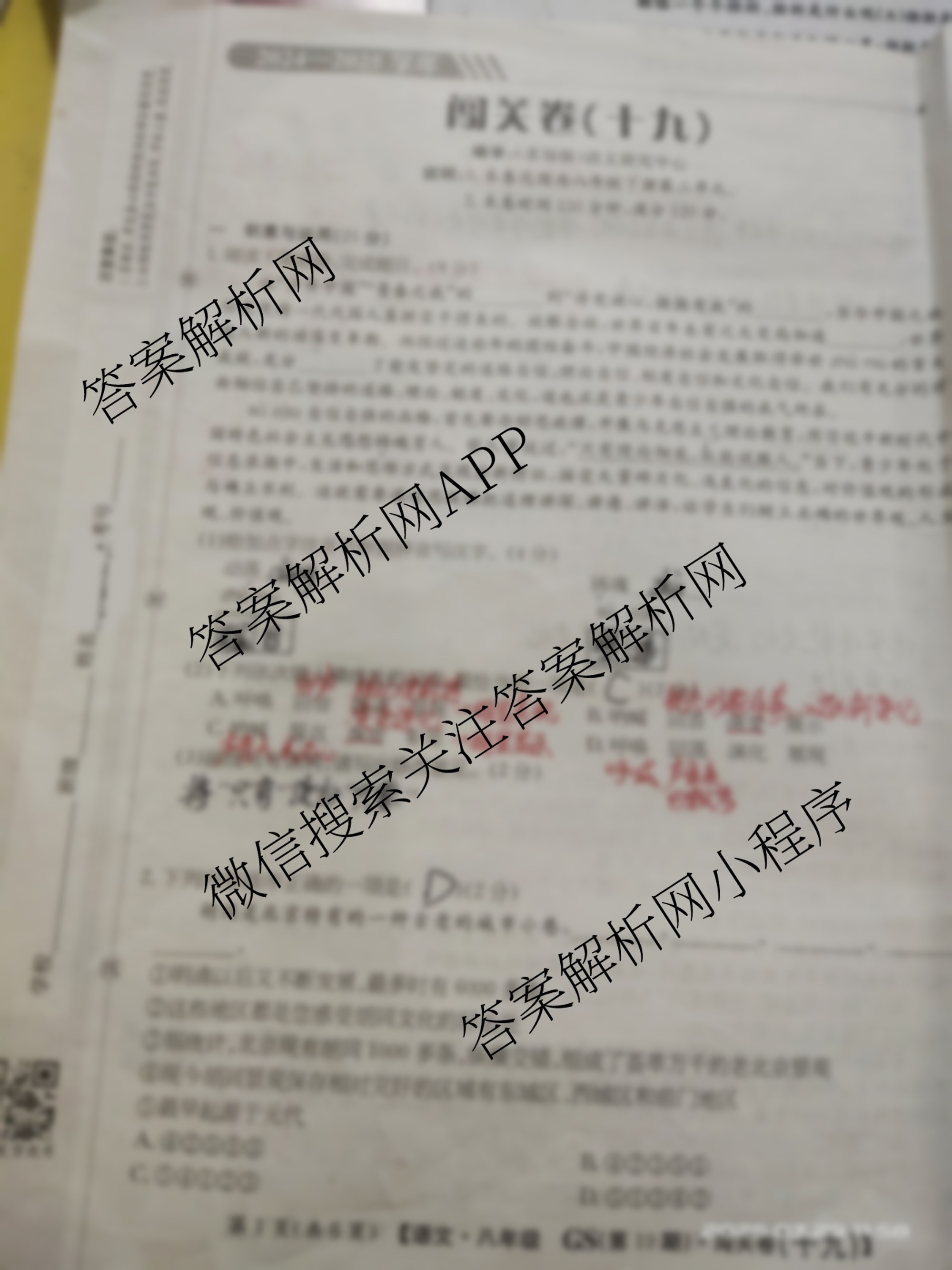 2024-2025 闯关卷 八年级 语文(GS)(十九)19试题,目前学英语报答案已经汇总了2024-2025 闯关卷 八年级 语文(GS)(十九)19试题的各科答案和试卷,获取更多闯关卷答案解析,请在关注本站。