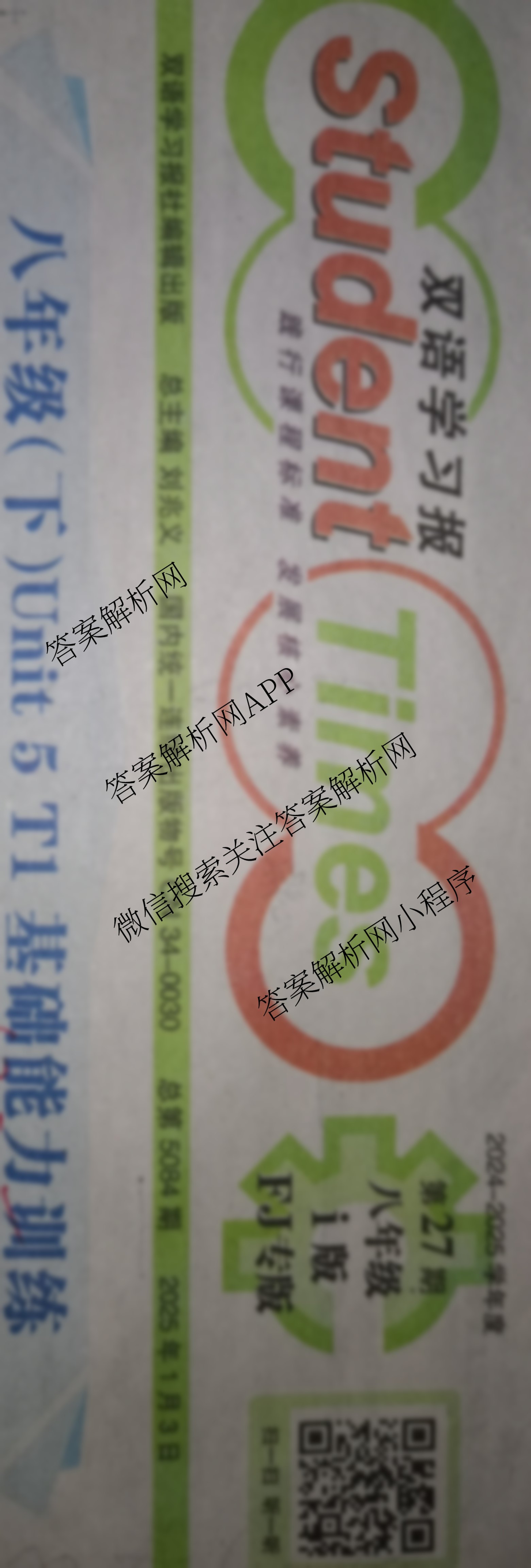 2024-2025学年下学期 双语学习报 八年级 i版FJ专版第27期答案
