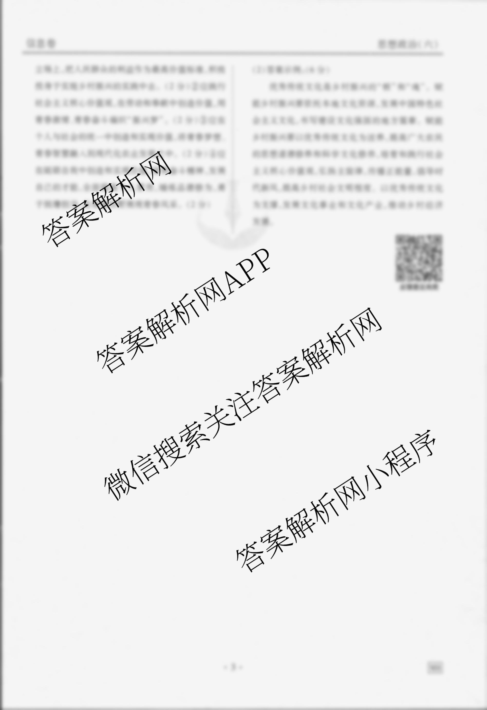 衡水金卷先享题信息卷 2025年普通高中学业水平选择性考试模拟(六)6政治(MH)答案