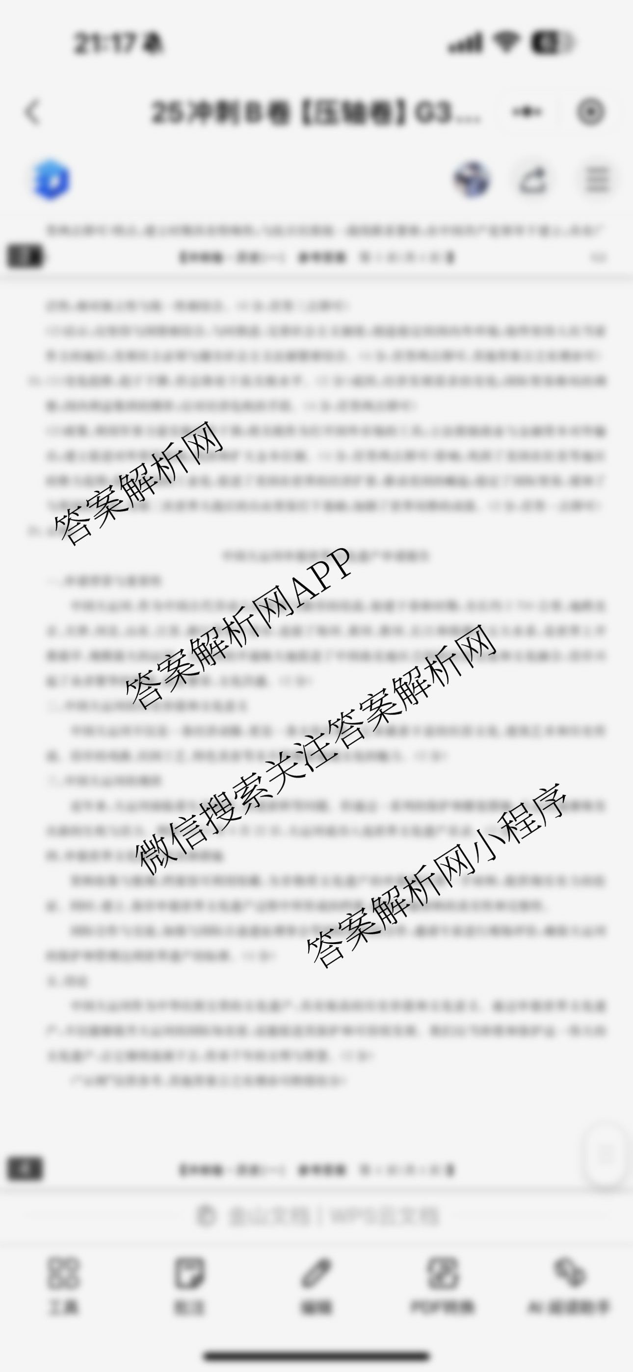 - [高三]2025年安徽省普通高中学业水平选择性考试冲刺压轴卷(一)1历史(安徽)答案
