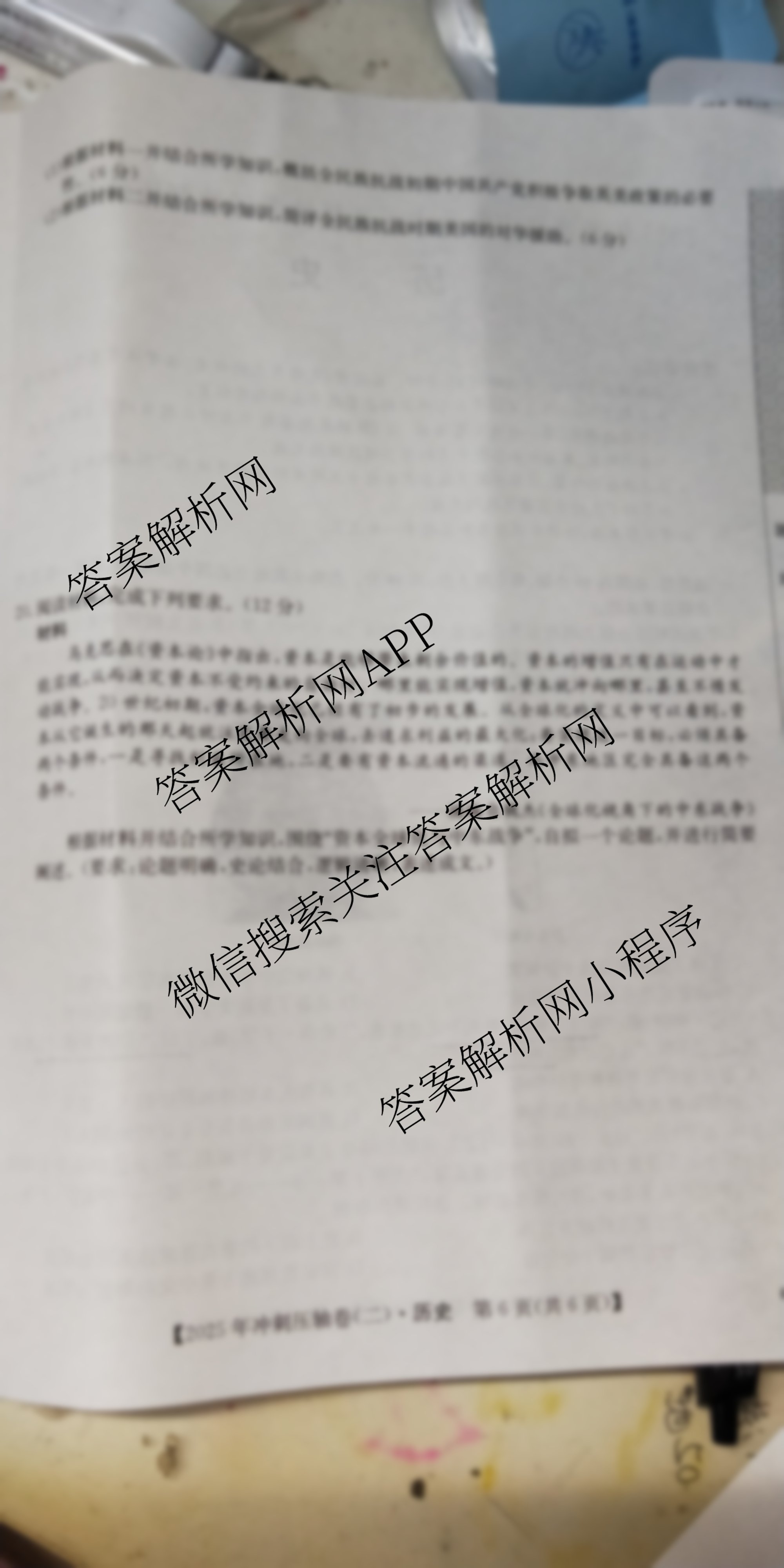 - [高三]2025年普通高中学业水平选择性考试冲刺压轴卷(二)2历史(G3)试题