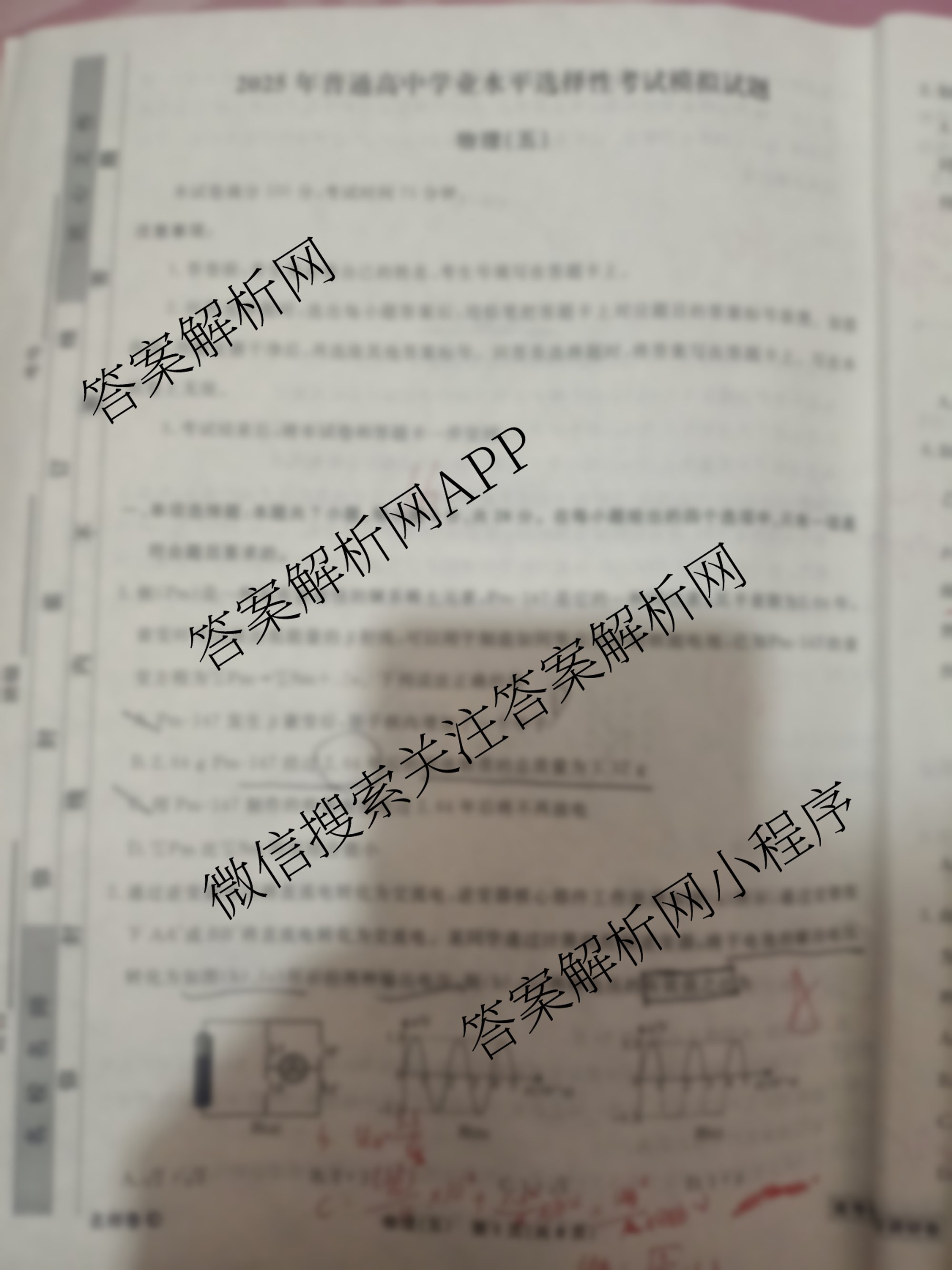 衡水名师卷高考模拟调研卷 2025年普通高中学业水平选择性考试模拟试题(五)5物理(无符号)答案