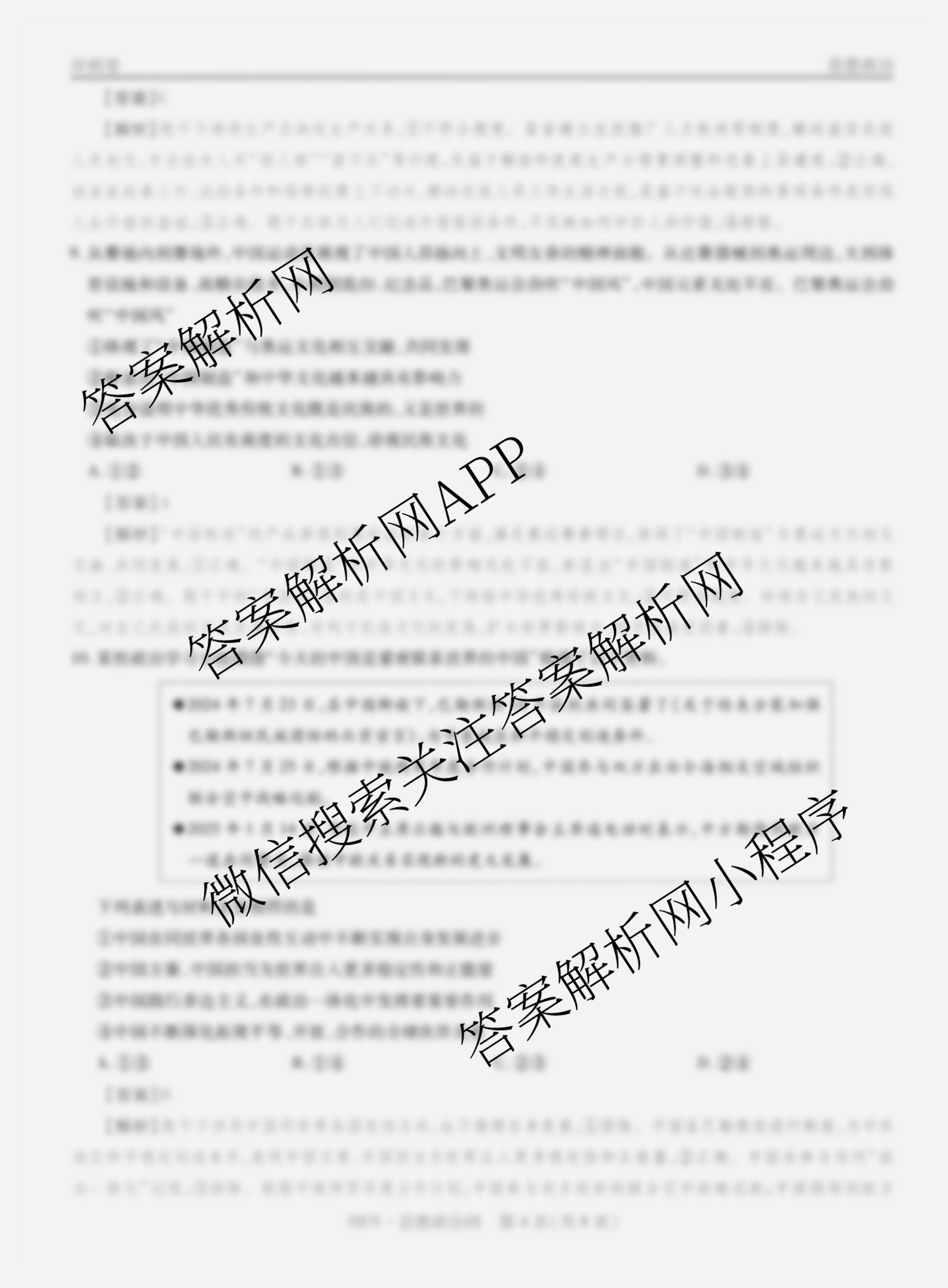 - 2025届(智慧上进)名校学术联盟高考模拟信息卷&冲刺卷&预测卷(四)4政治(无字母)答案