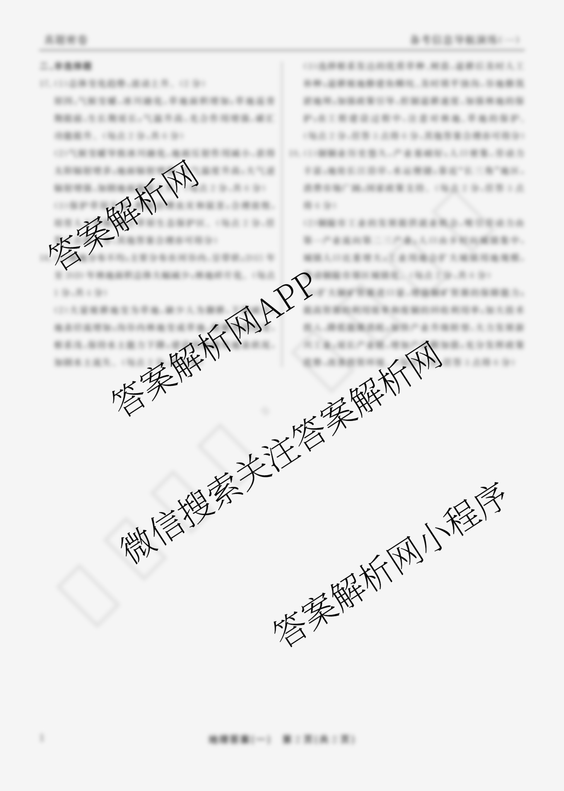 - 2024-2025[真题密卷]学年度备考信息导航演练(一)1地理(2)答案