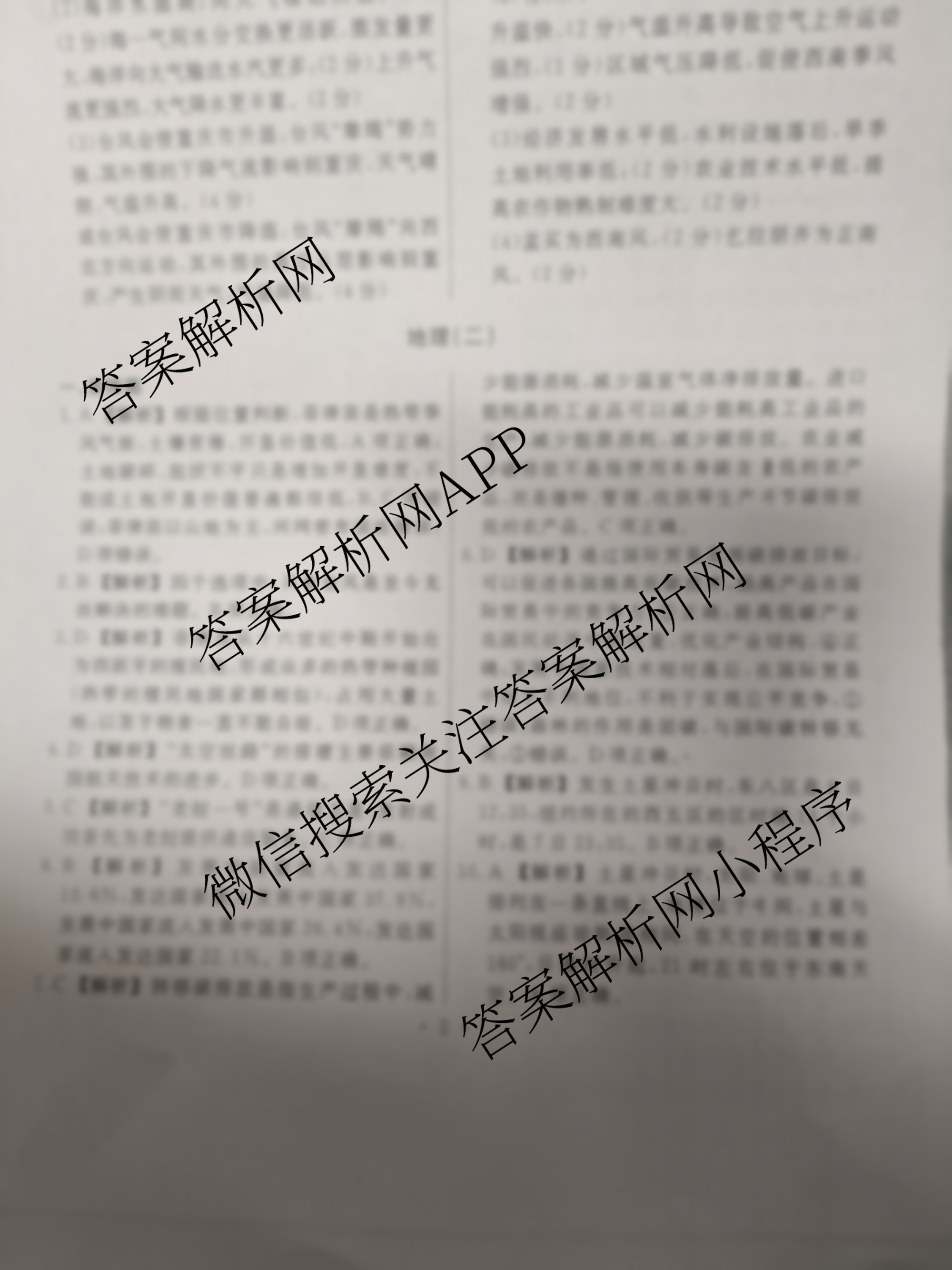 衡水名师卷高考模拟信息卷2025年普通高等学校招生全国统一考试模拟(二)2地理(双圆圈)答案