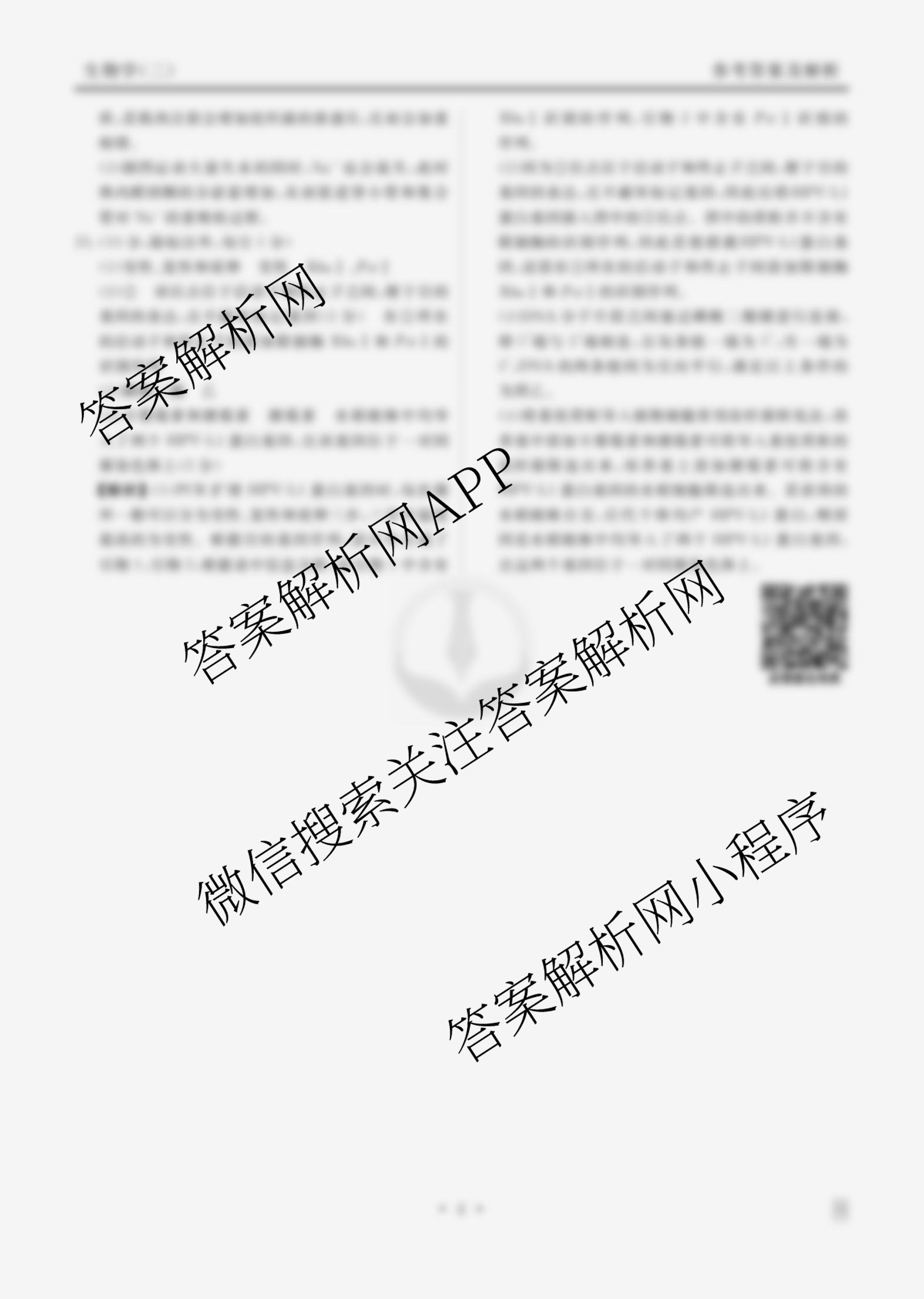 - (衡水金卷先享题)·信息卷 2025年普通高中学业水平选择性考试模拟试题(二)2生物(Q)答案