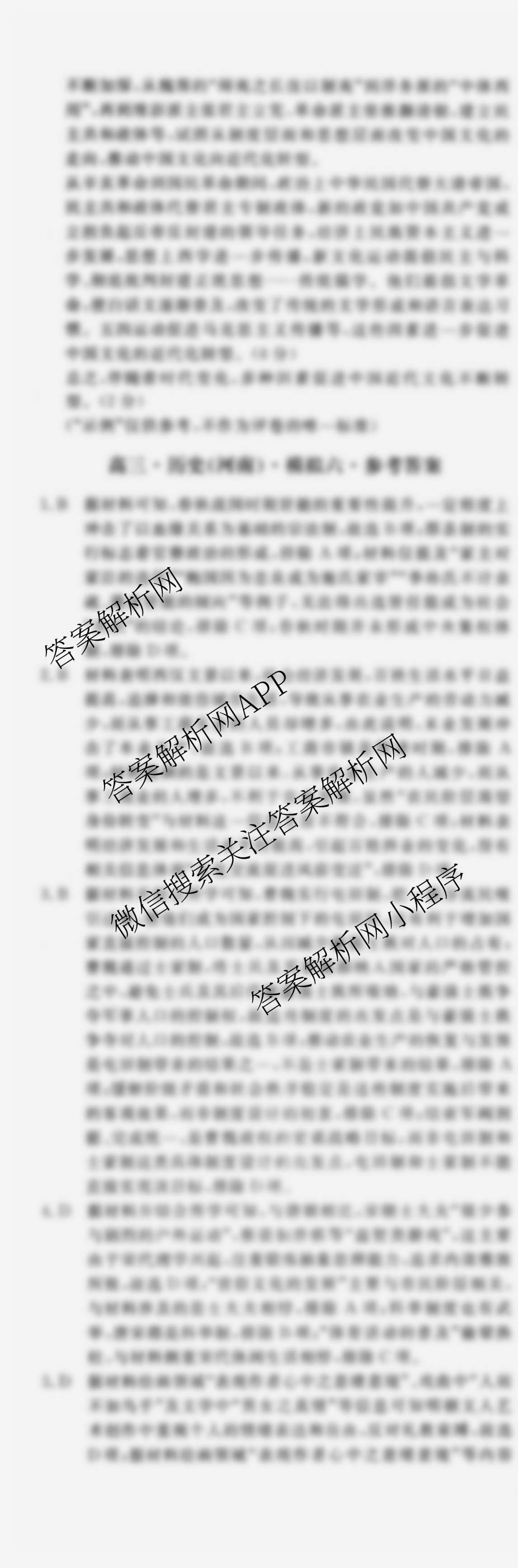 - 2025届(黄冈八模)[高三]历史模拟测试卷(五)5历史(河南)答案