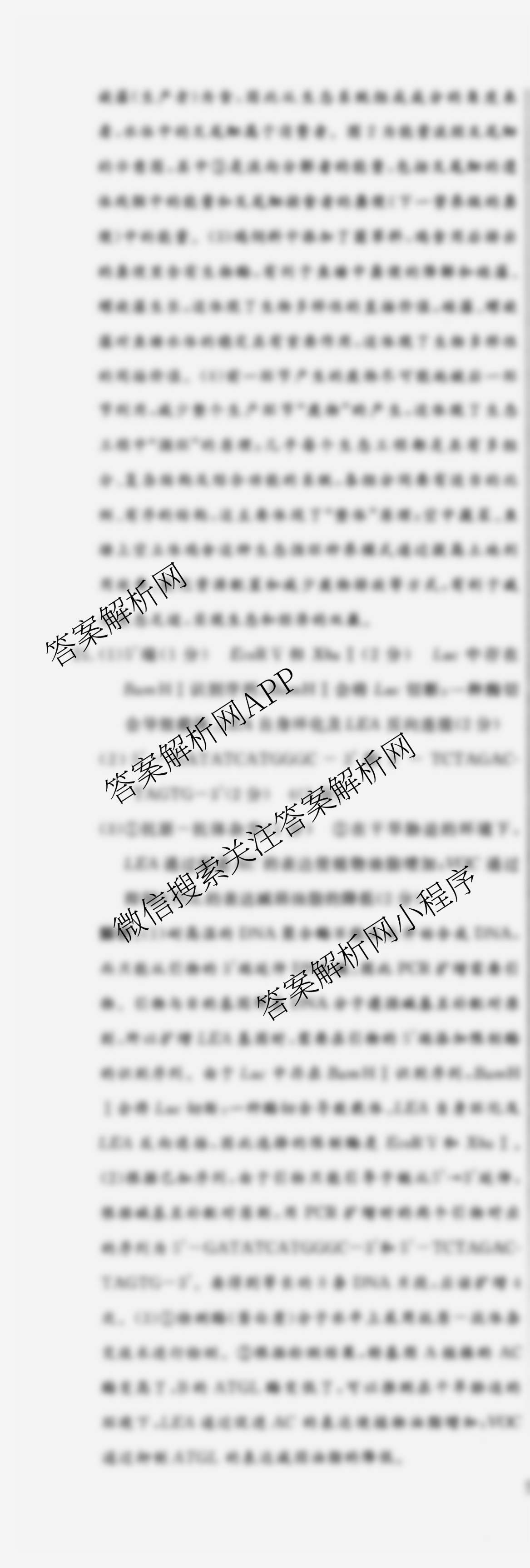 - [黄冈八模]2025届[高三]生物模拟测试卷(六)6生物(河南)答案