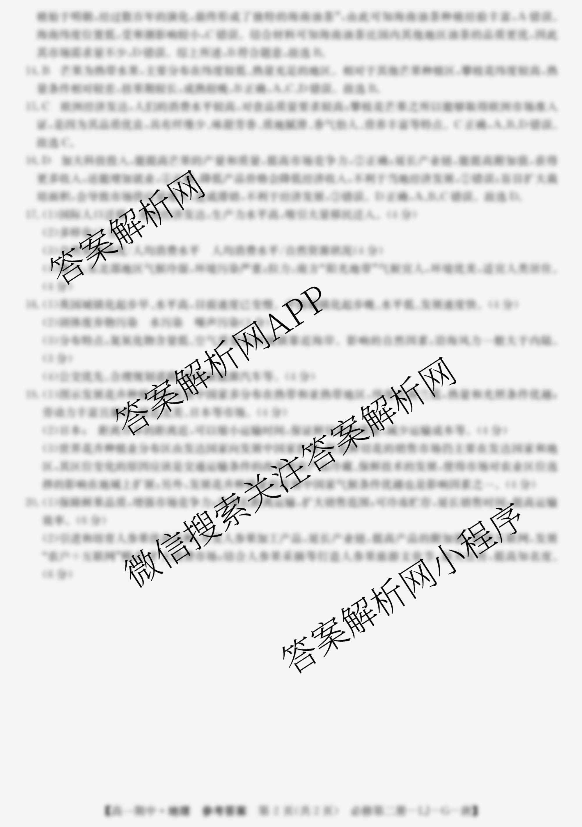 [高一]2024~2025全国名校第二学期期中考试试卷 地理(必修第二册-LJ-G-唐)答案