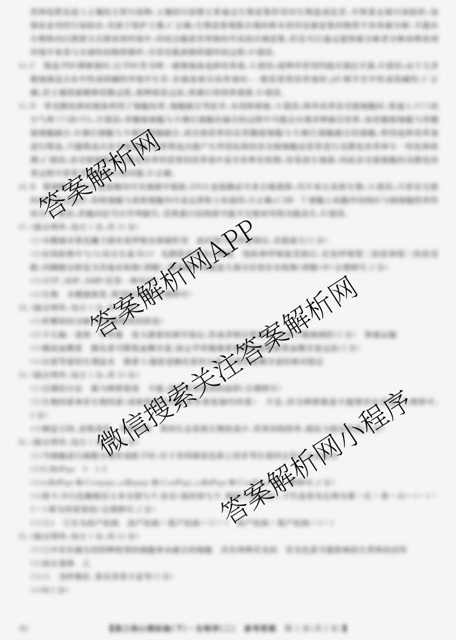 - (九师联盟)·2024~2025学年[高三]核心模拟卷(下)(二)2生物(HB)答案