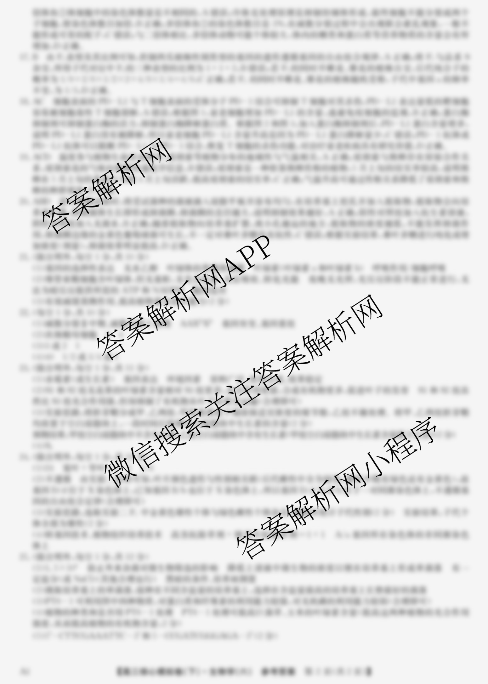 - (高三)(九师联盟)2024~2025学年核心模拟卷(下)(六)6生物(HB)答案