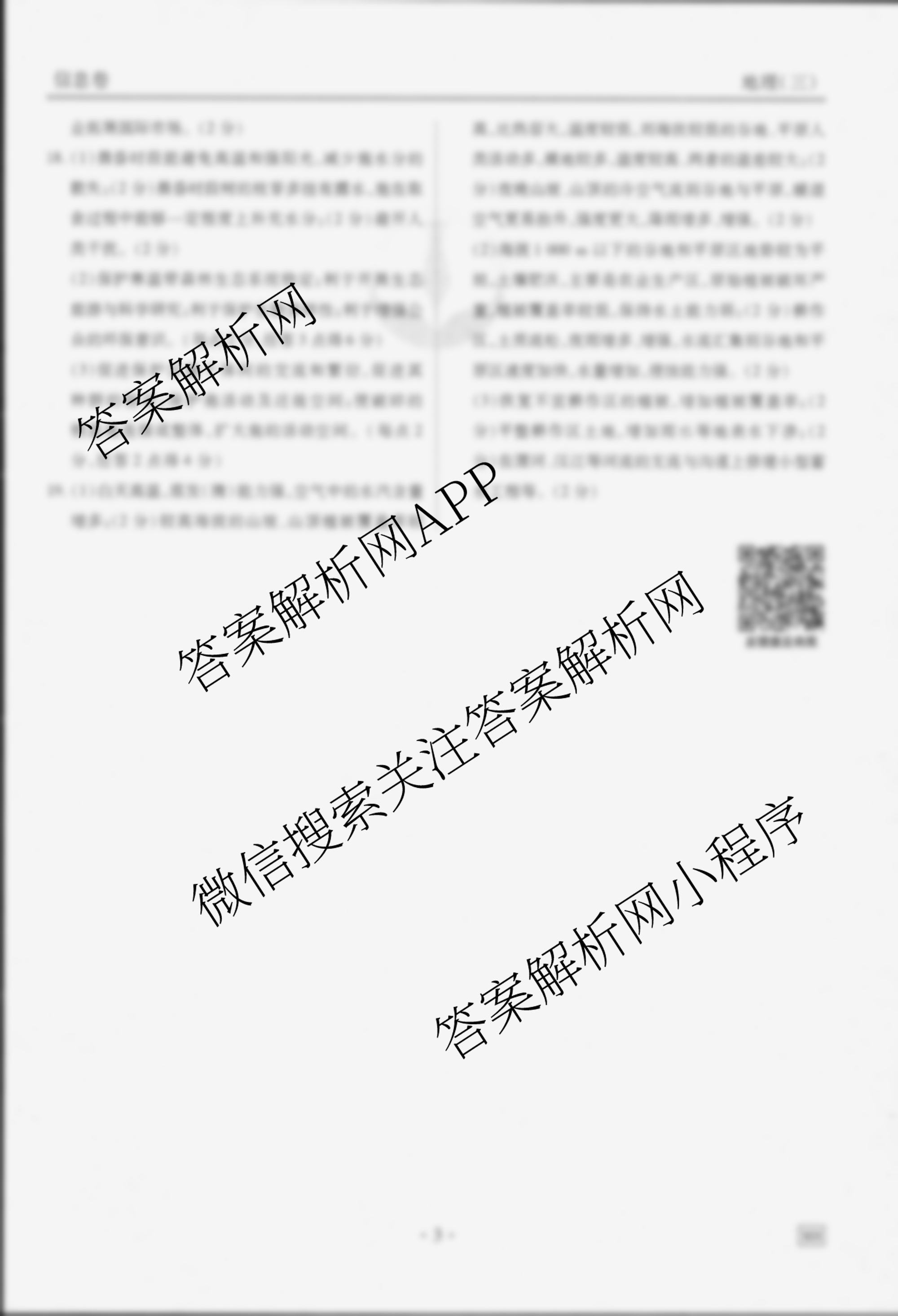 - [高三]衡水金卷先享题信息卷 2025年普通高中学业水平选择性考试模拟试题(三)3地理(CY)答案