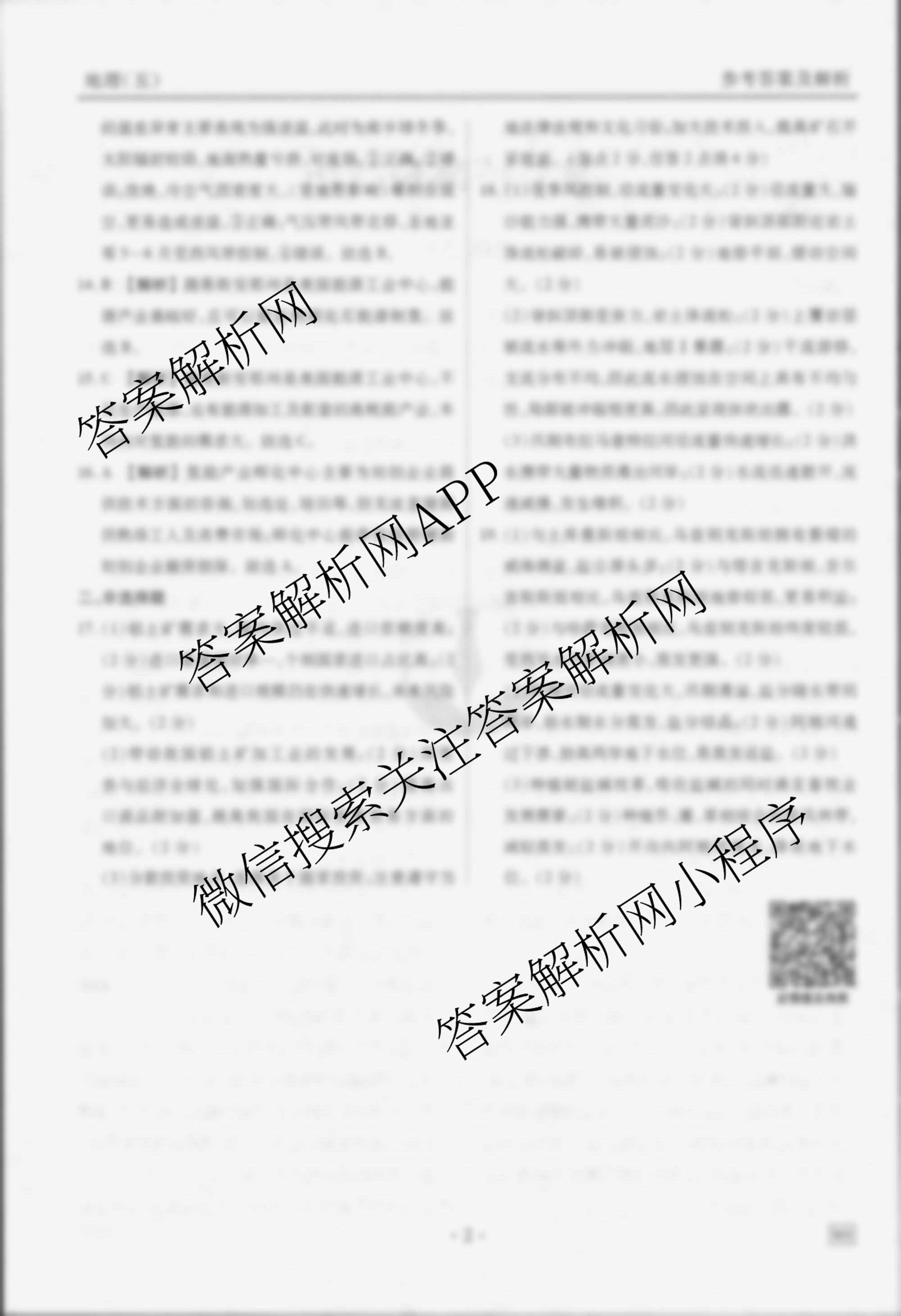- [高三](衡水金卷先享题)·信息卷 2025年普通高中学业水平选择性考试模拟试题(五)5地理(MH)答案