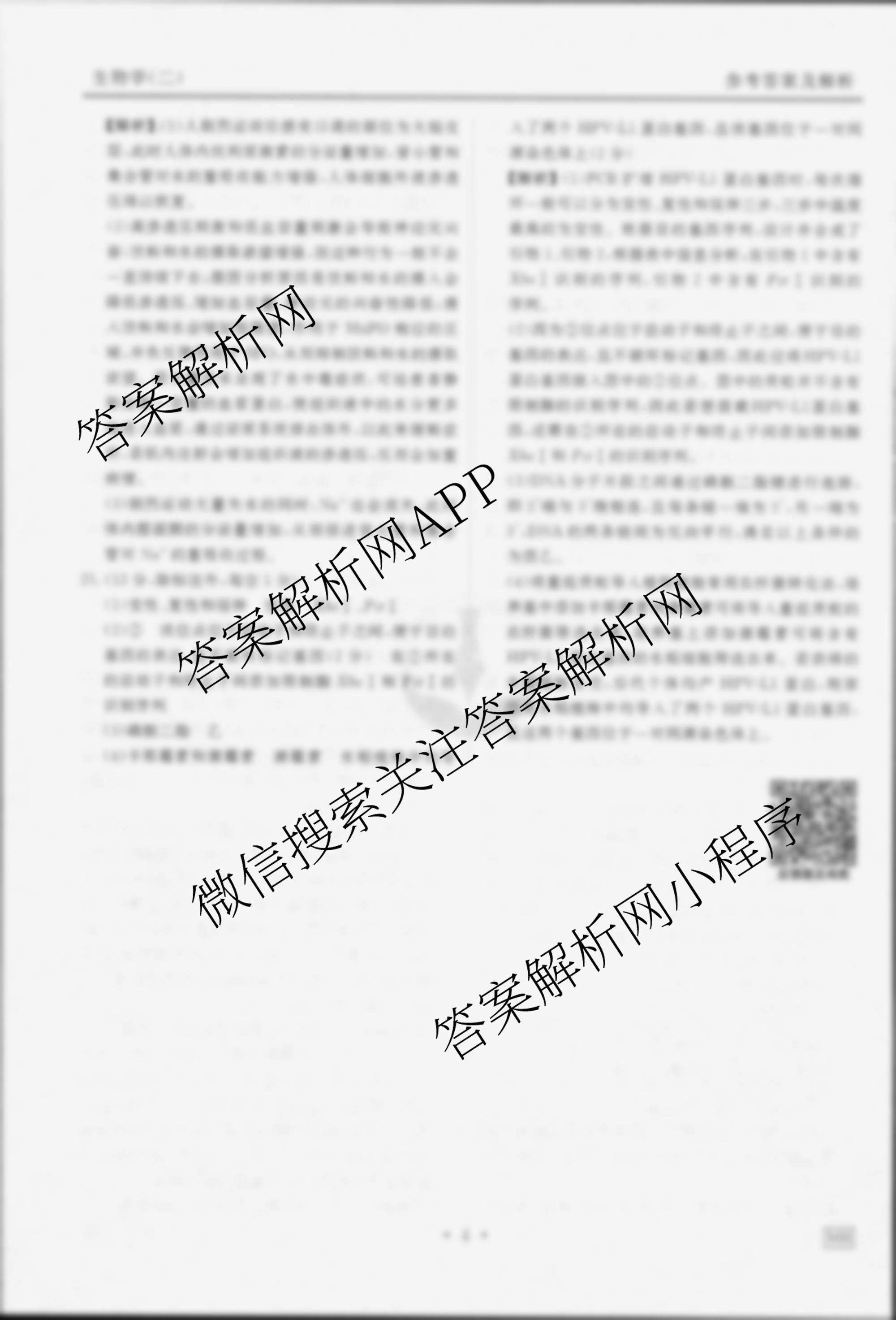 - (衡水金卷先享题)信息卷 2025年普通高中学业水平选择性考试模拟试题(二)2生物(AH)答案