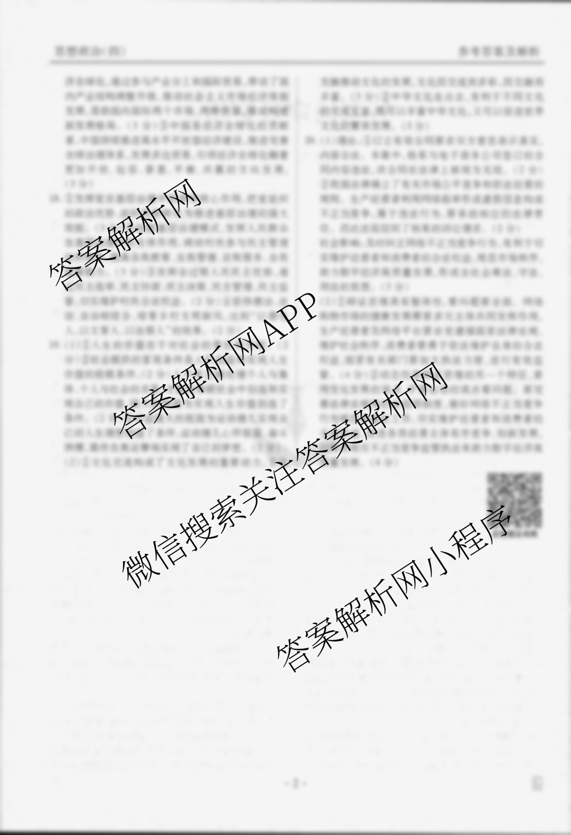 衡水金卷先享题信息卷 2025年普通高中学业水平选择性考试模拟试题(四)4政治(L)答案