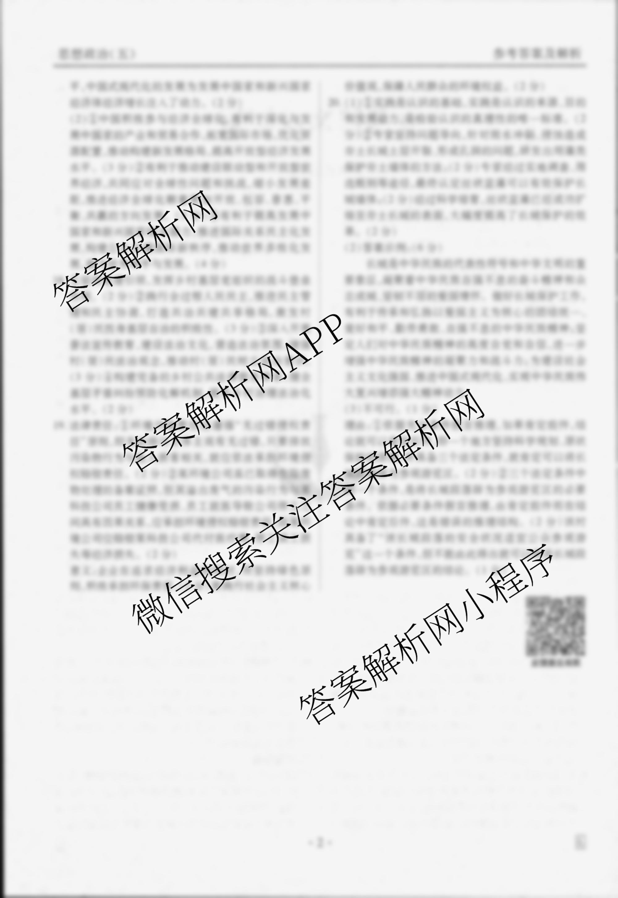 - [高三](衡水金卷先享题)·信息卷 2025年普通高中学业水平选择性考试模拟试题(五)5政治(FJ)答案
