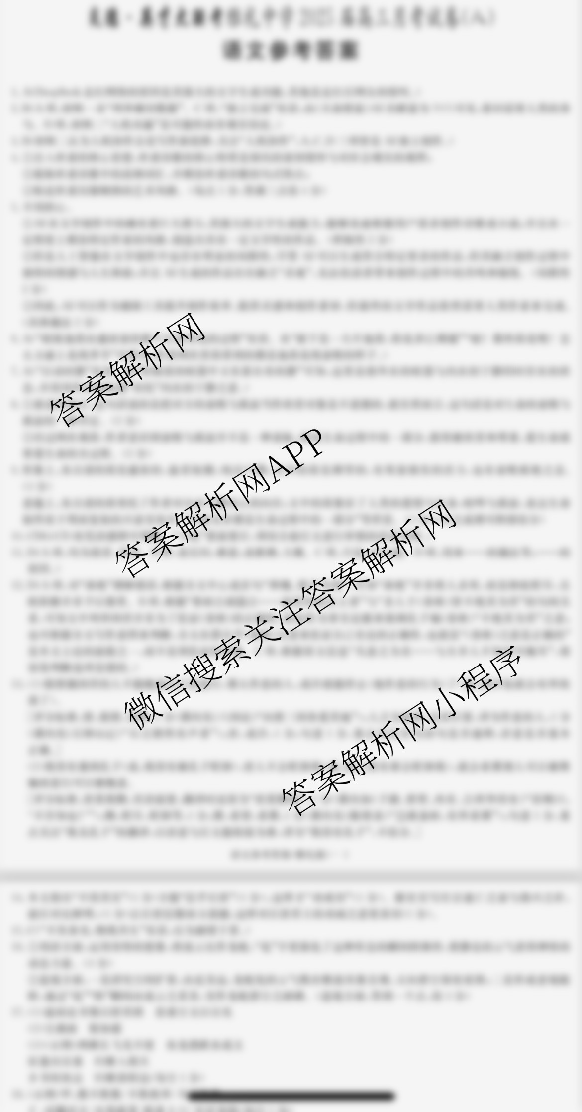 2025届(炎德英才大联考)雅礼中学(高三)月考试卷(八)8语文答案