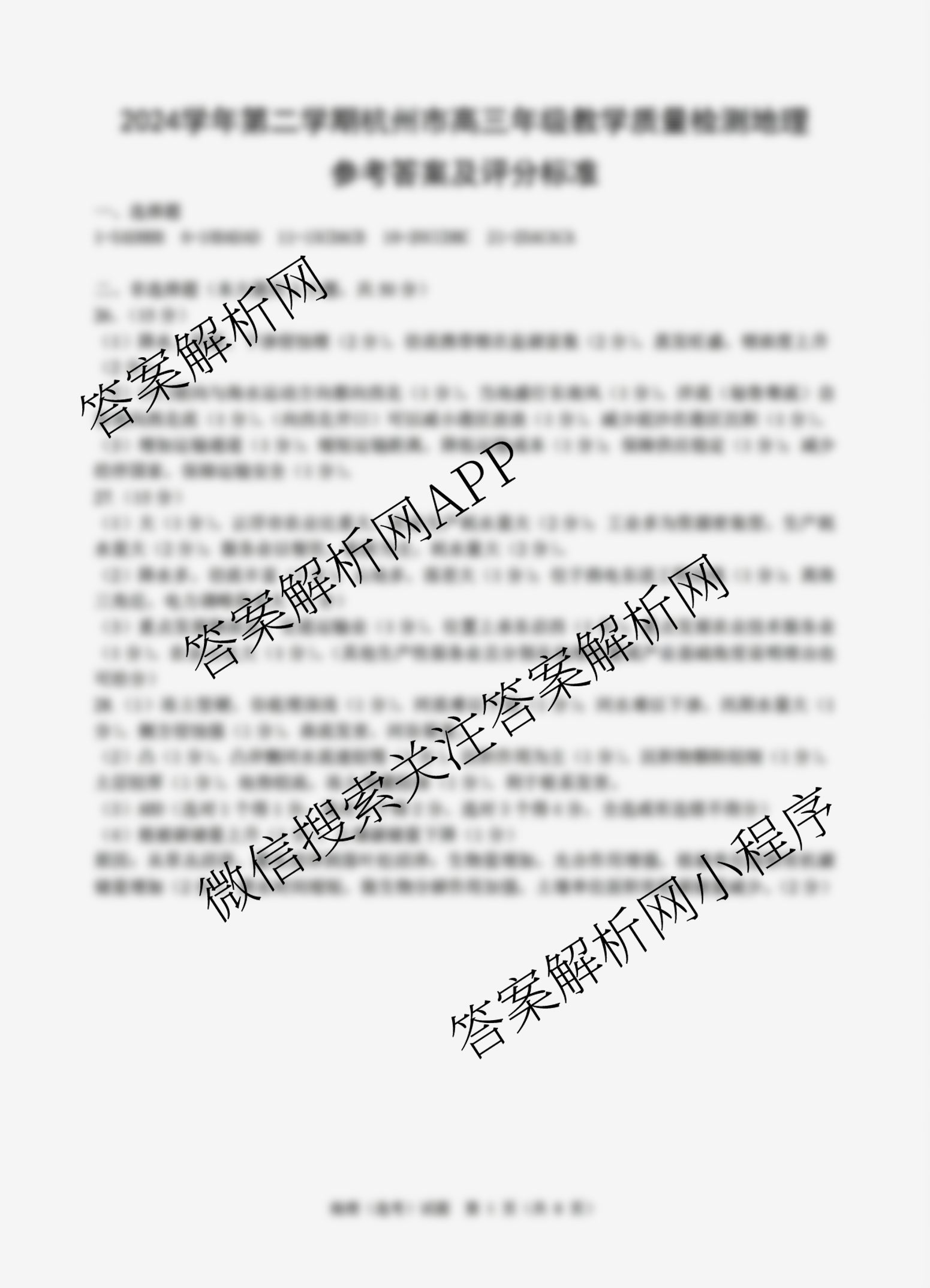 - (高三)2024学年第二学期杭州市年级[教学质量检测](杭州二模)地理答案