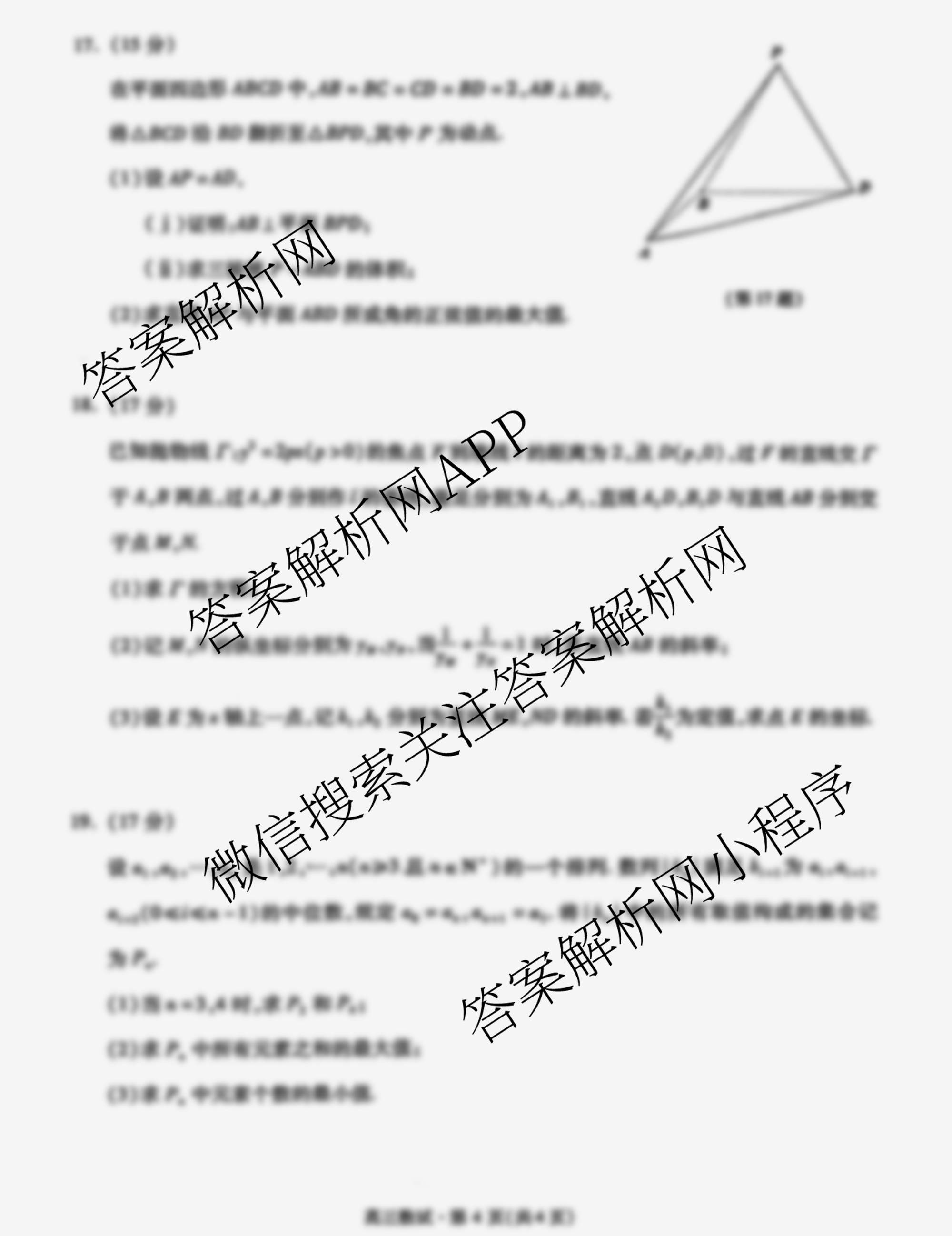 2024学年第二学期杭州市(高三)年级(教学质量检测)(杭州二模)数学试题