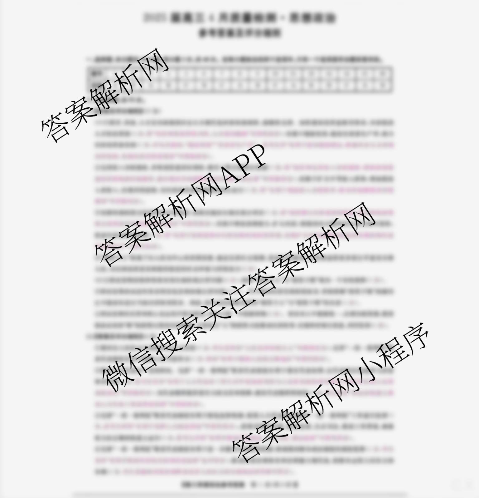 - [高三]金科大联考2025届4月质量检测(4.10)政治答案