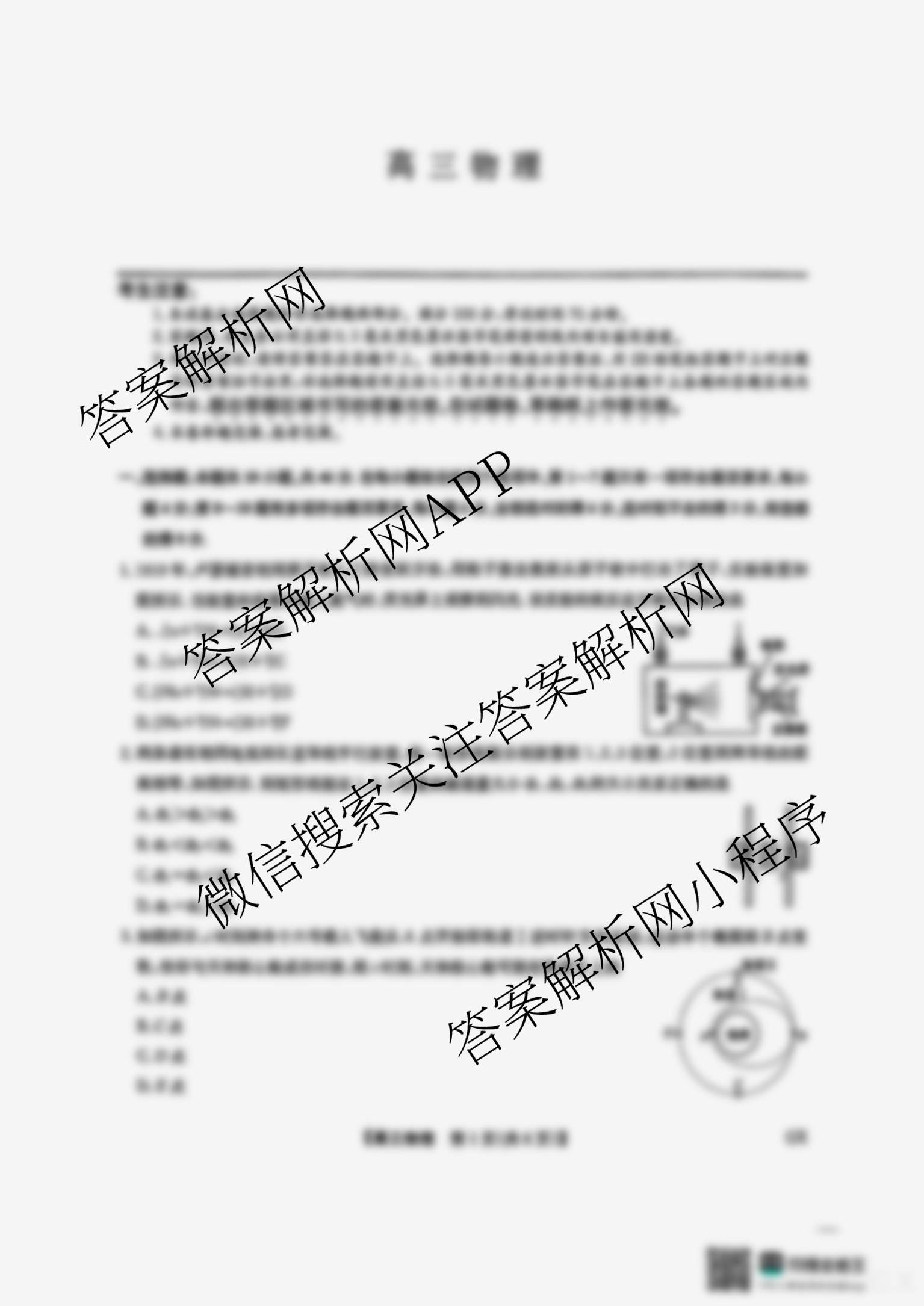 - [高三][九师联盟]·2025届年级4月考试(4.9)物理试题