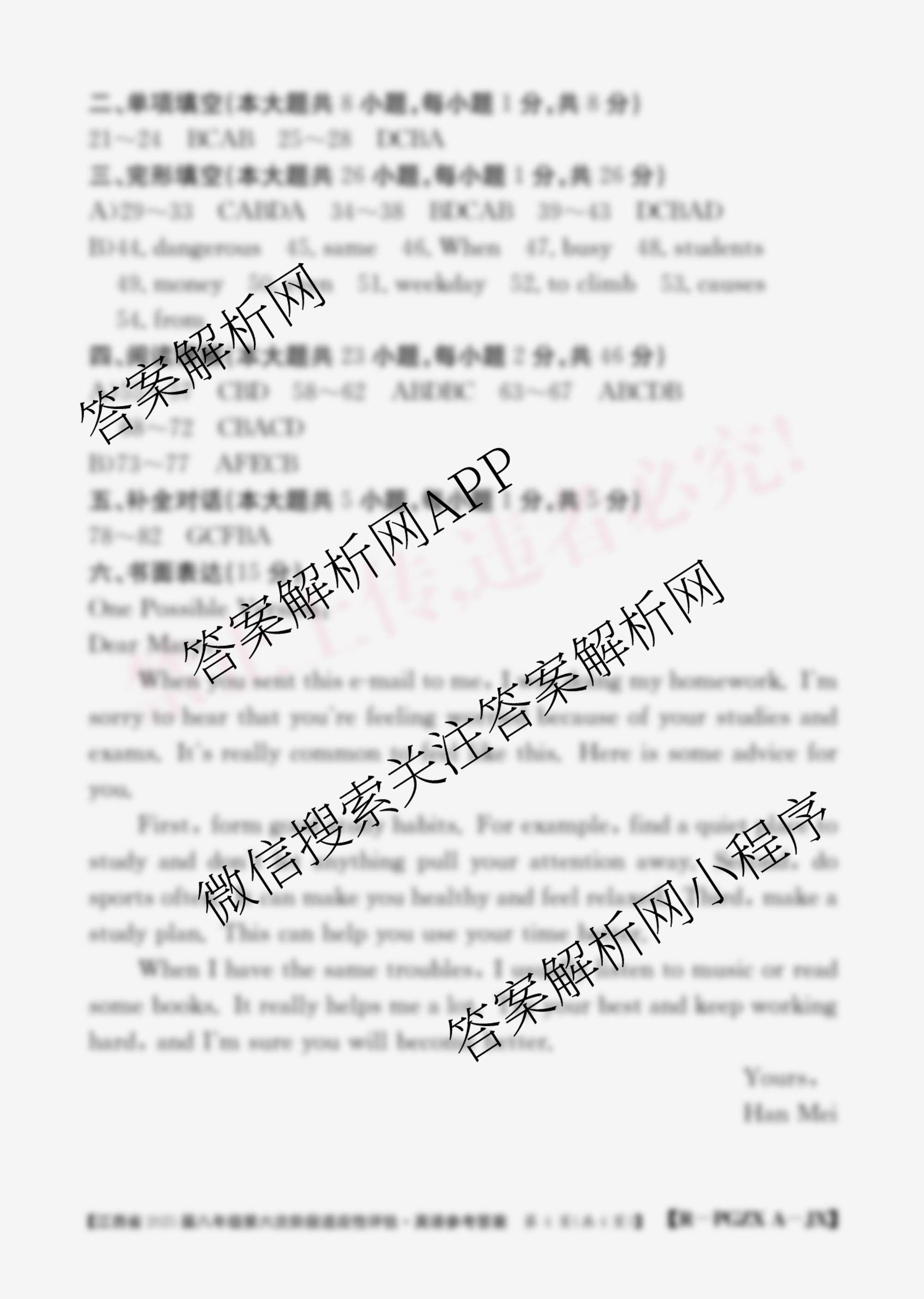 - 江西省2025届[八年级]第六次阶段适应性评估[PGZX A-JX]英语(R)答案