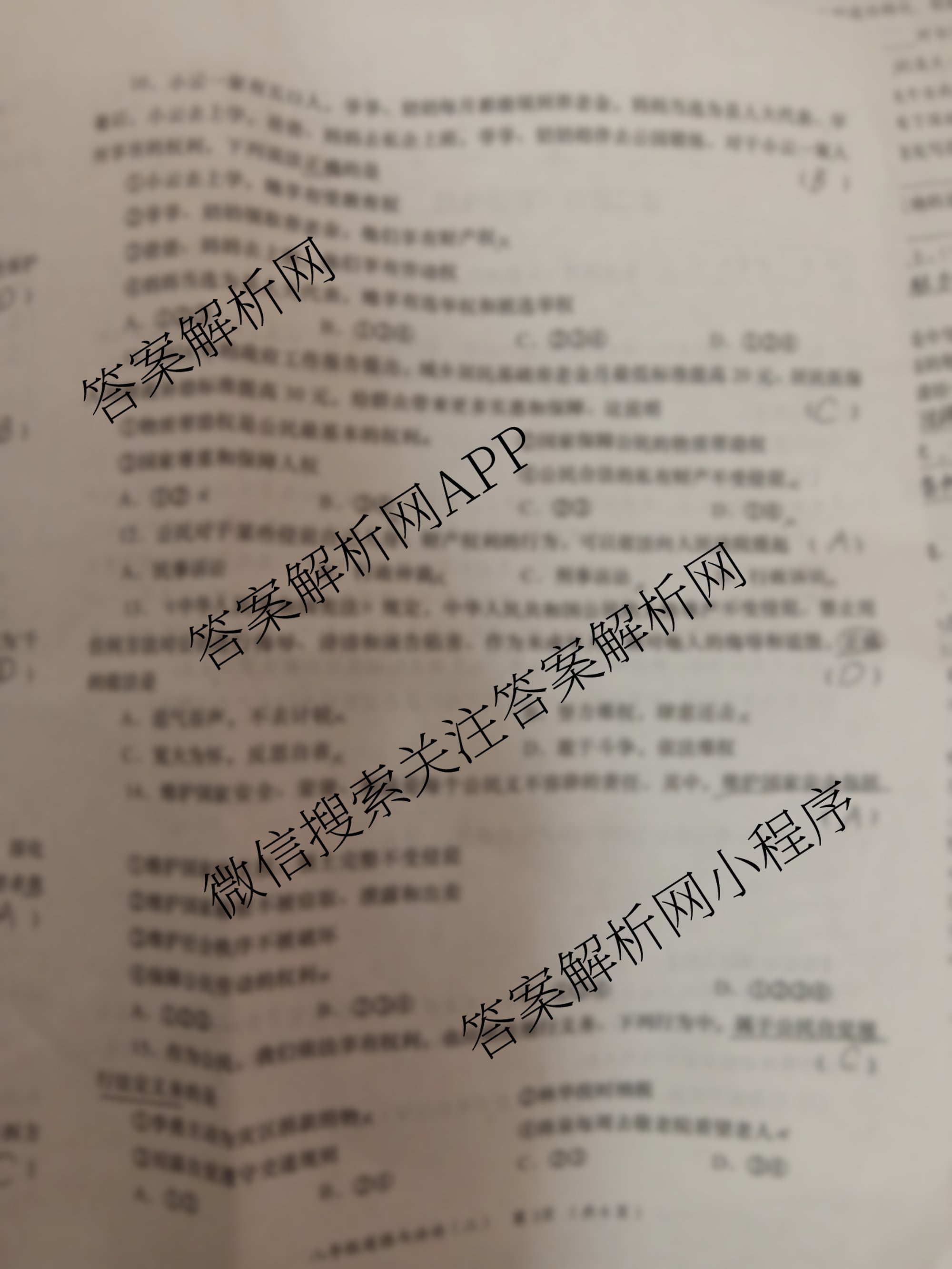 - [八年级]陕西省2024-2025学年度第二学期(周期学业能力评鉴)(二)道德与法治答案