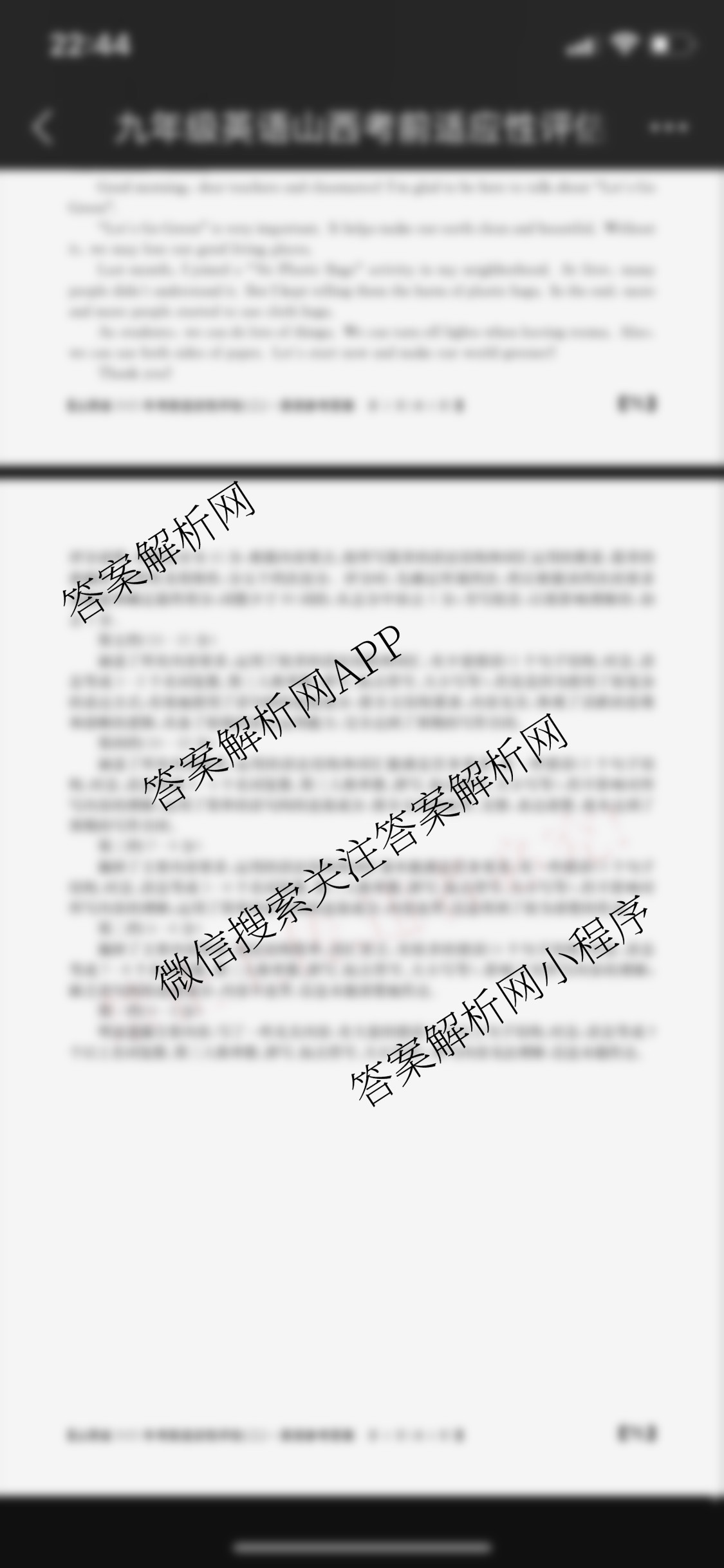 - 2025届山西省[九年级]考前适应性评估(二)[7L]英语试题