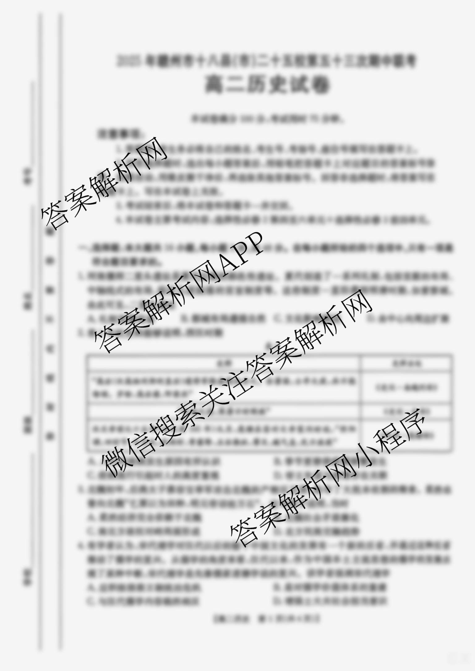 - (高二)上进联考2025年赣州市十八县(市)二十五校第五十三次期中联考历史答案