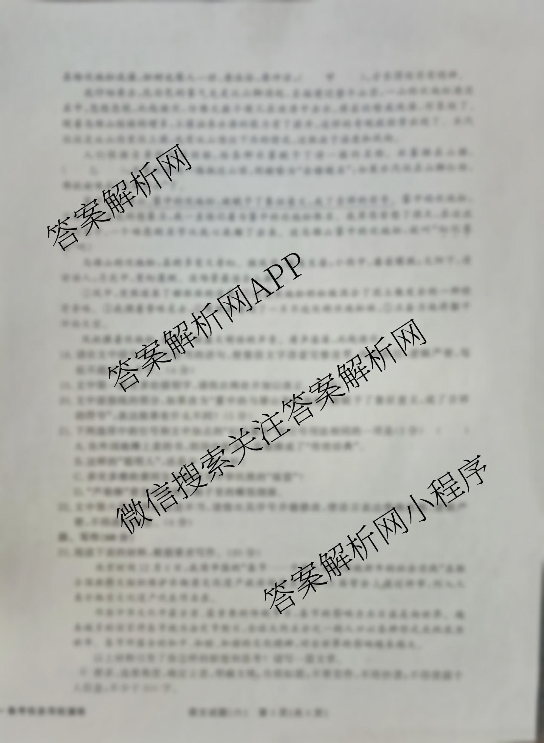 - 2024~2025(真题密卷)·学年度备考信息导航演练(六)6语文(B)答案