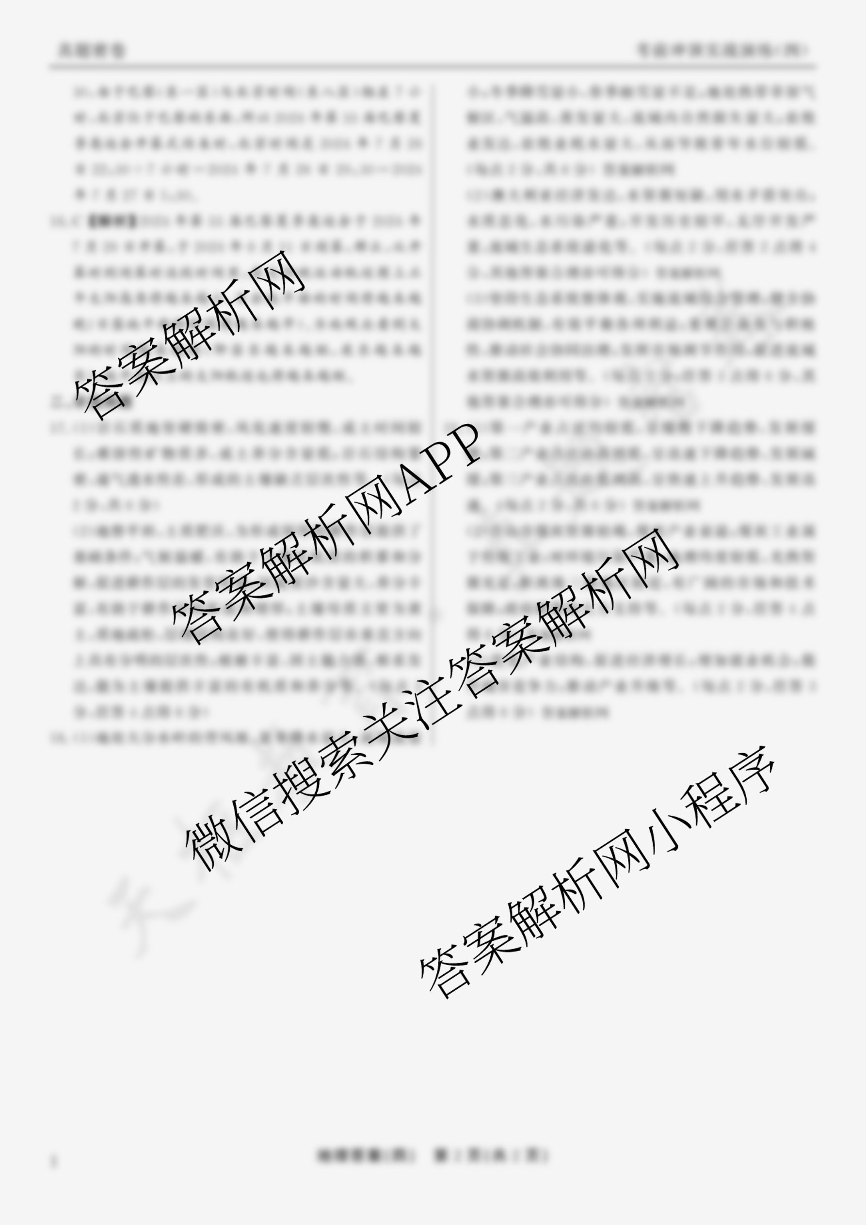 真题密卷2024-2025学年度考前冲顶实战演练(四)4地理(1)答案