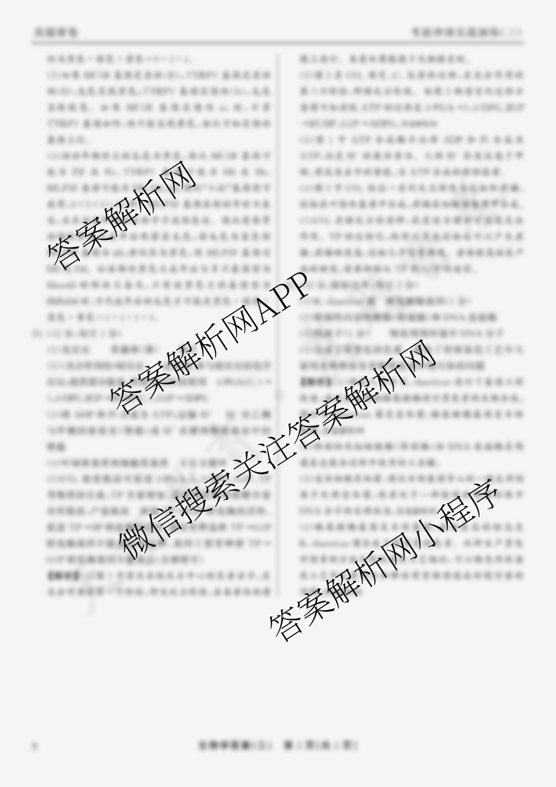 真题密卷2024-2025学年度考前冲顶实战演练(三)3生物(8)答案