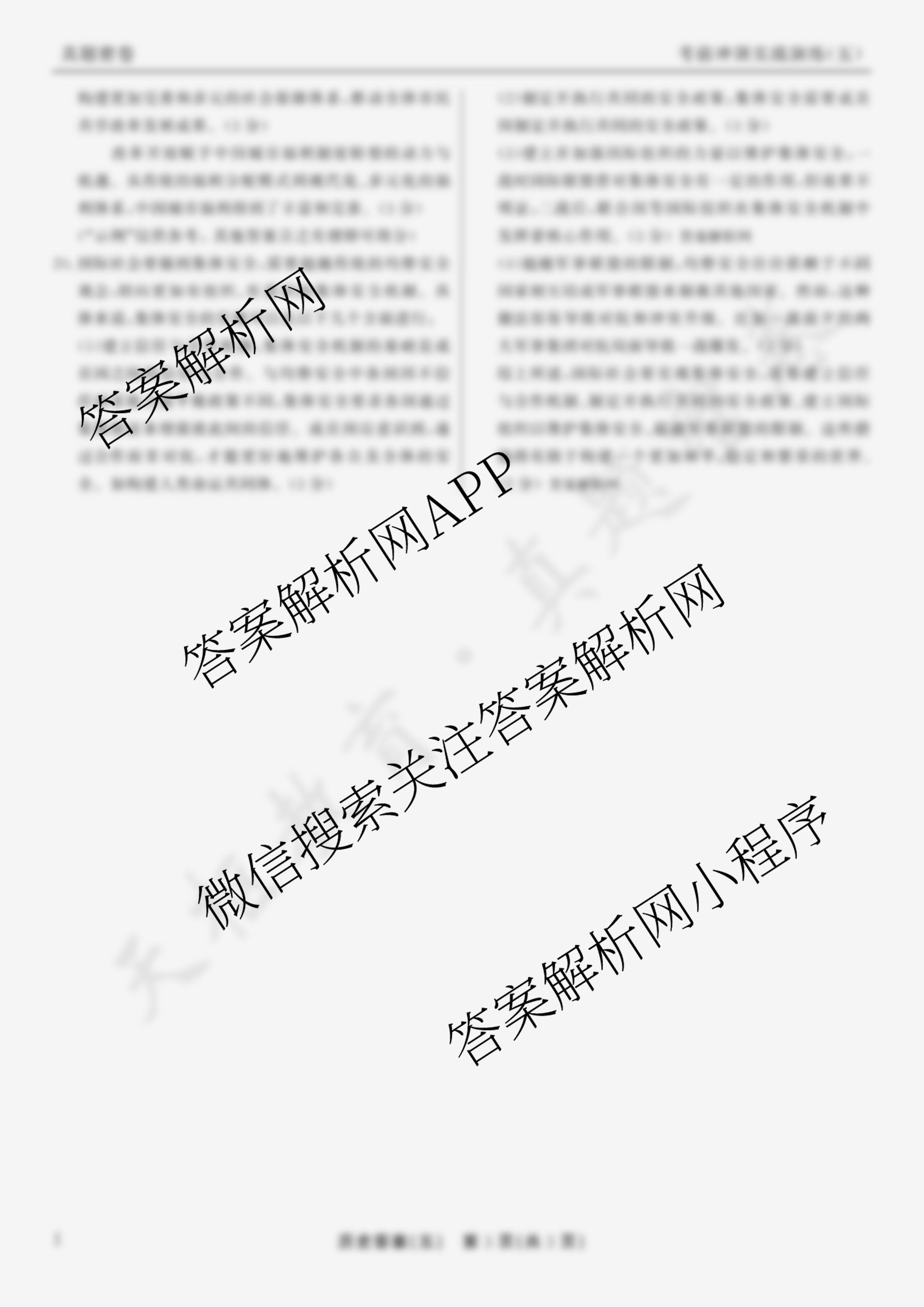真题密卷2024-2025学年度考前冲顶实战演练(五)5历史(1)答案