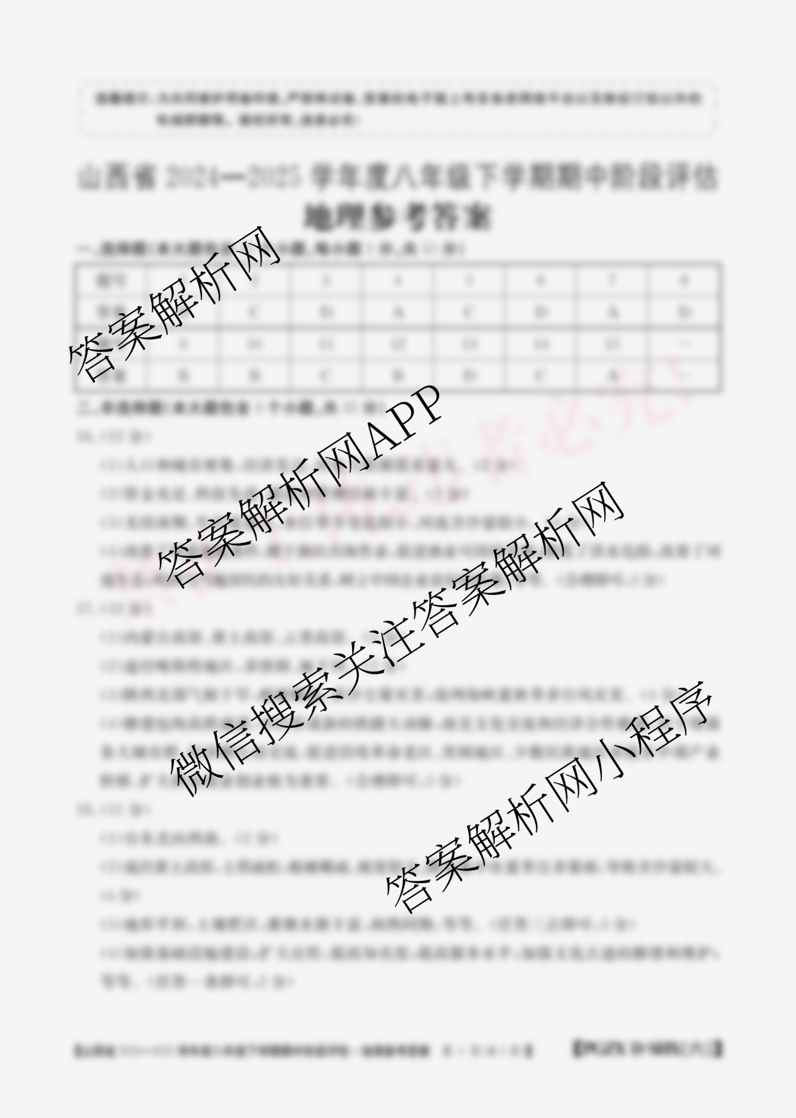 - 2024-2025(八年级)山西省学年度下学期期中阶段评估[PGZX D SHX(六)]地理(R)答案