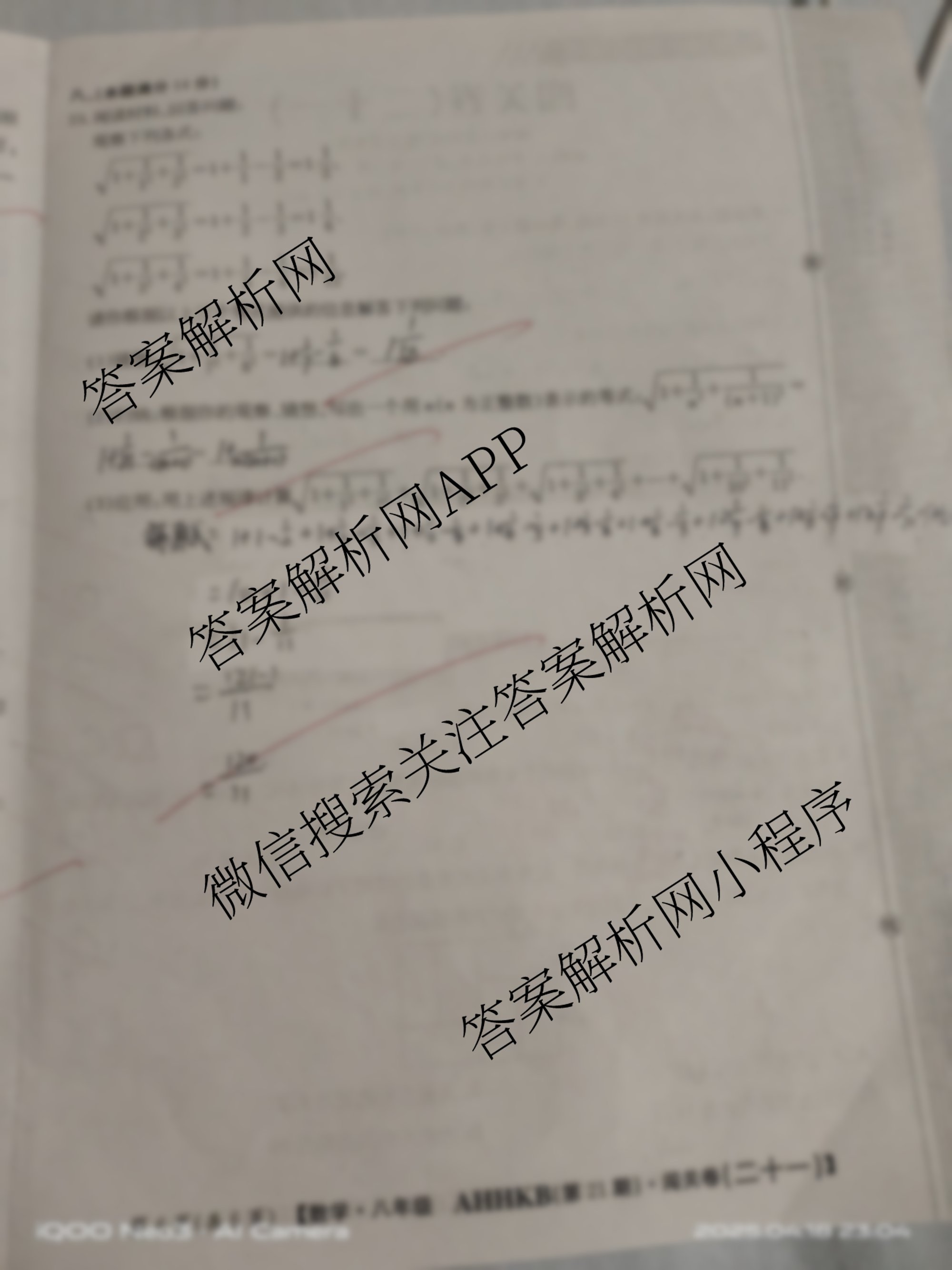 2024-2025 闯关卷 八年级 数学(AHHKB)(二十一)21试题