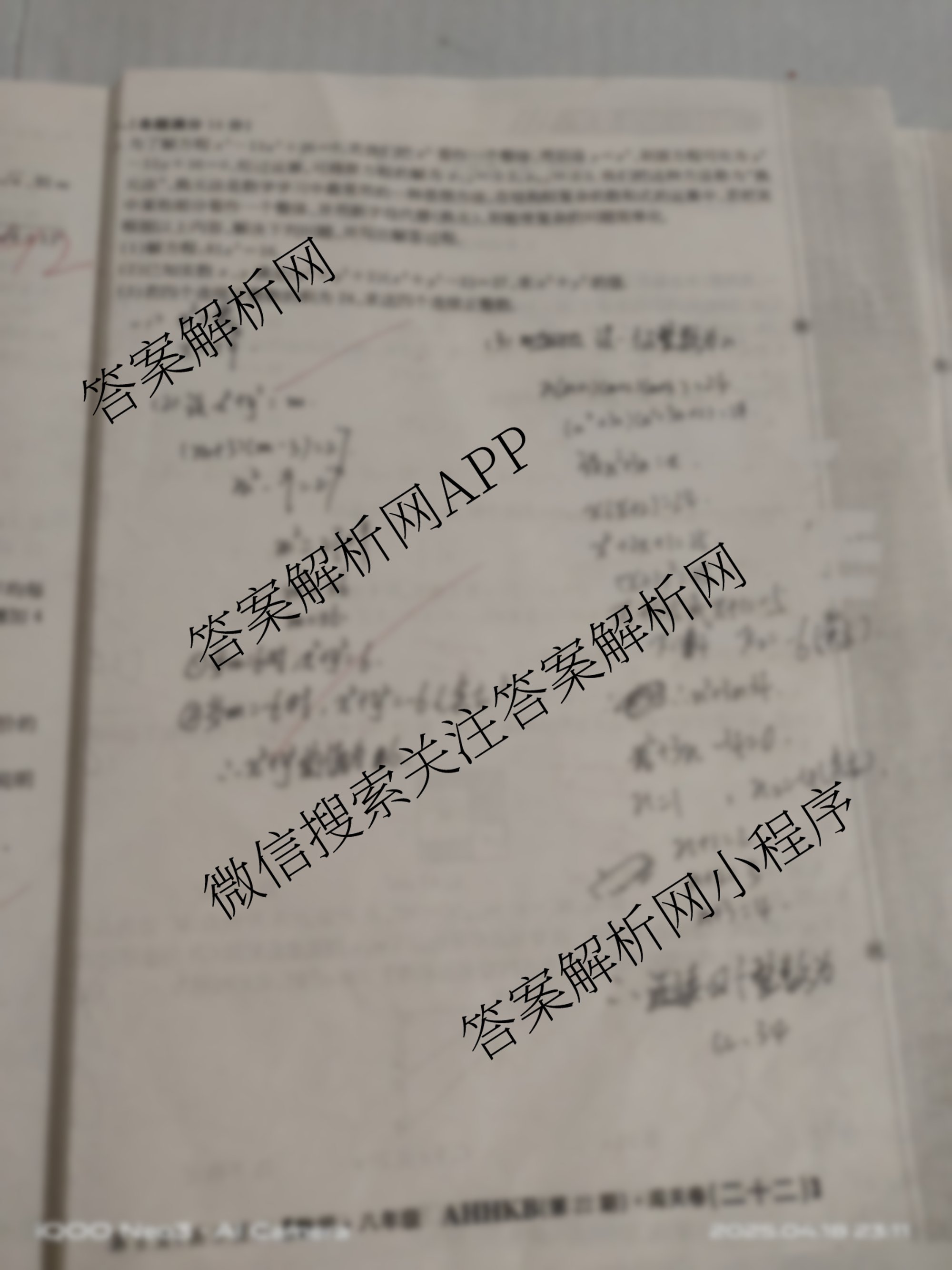 2024-2025 闯关卷 八年级 数学(AHHKB)(二十二)22试题
