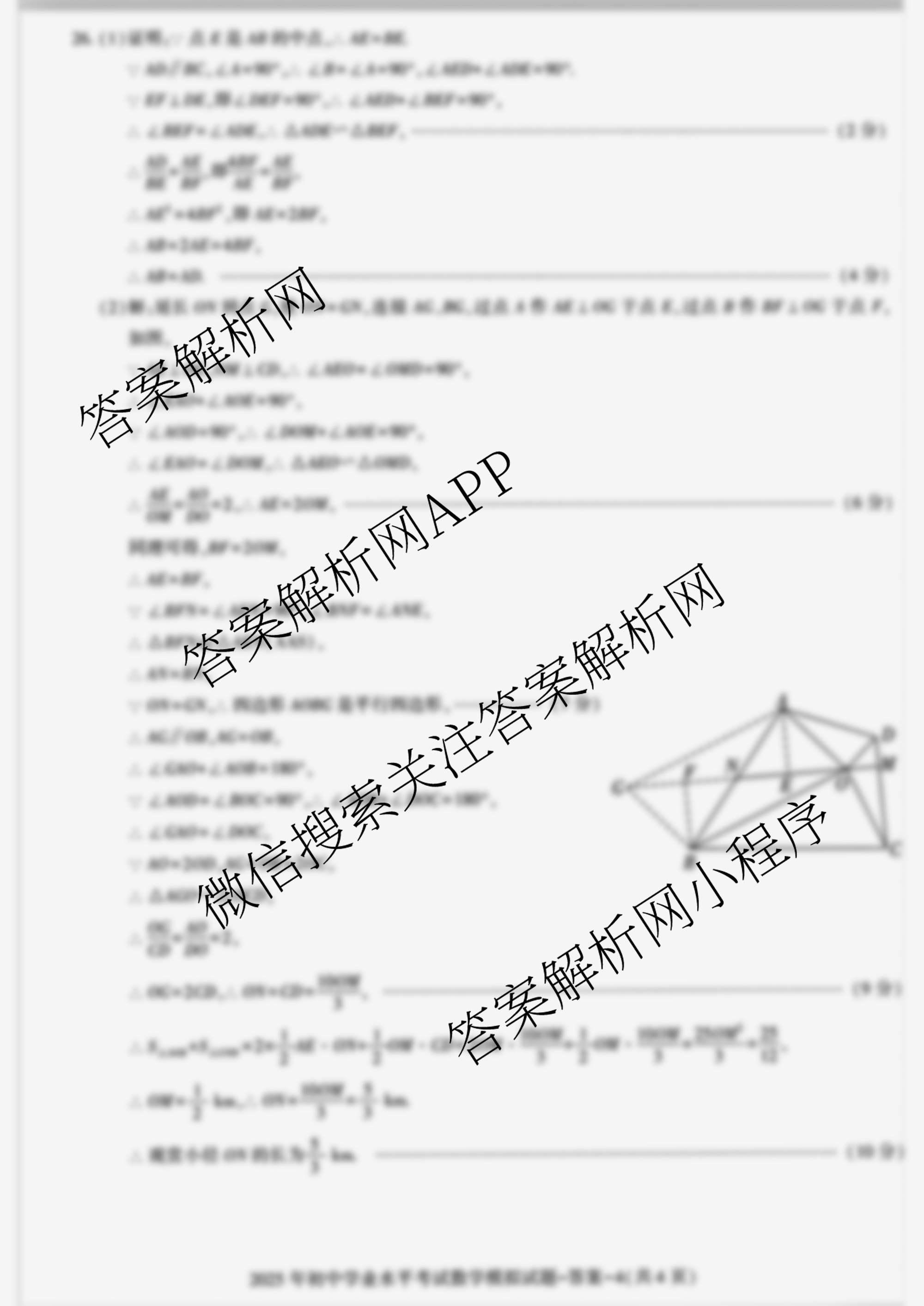 - 九年级HZ2025年(陕西省初中学业水平考试模拟试题)数学答案