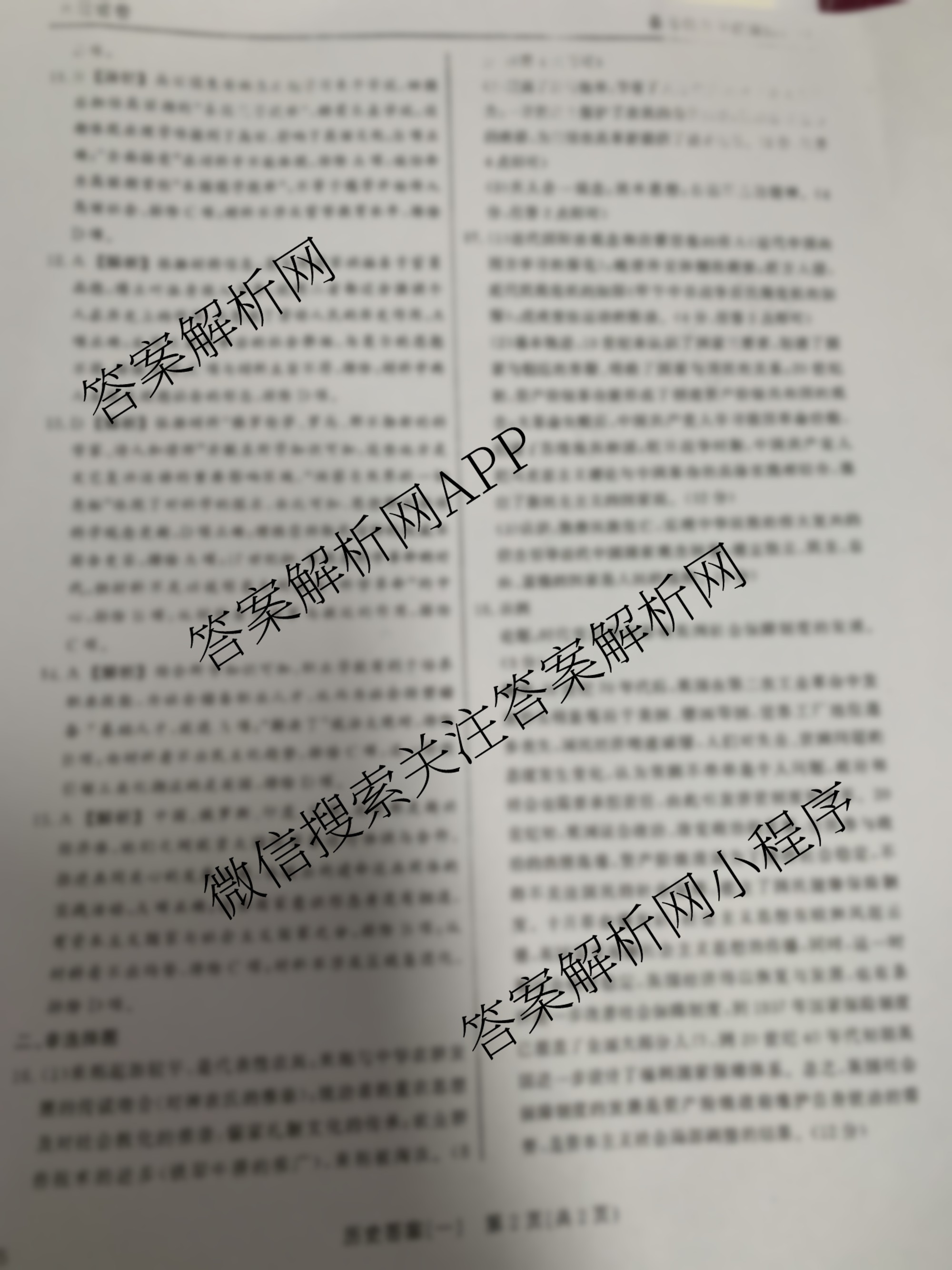 - 2024~2025[真题密卷]学年度备考信息导航演练(一)1历史(1)答案