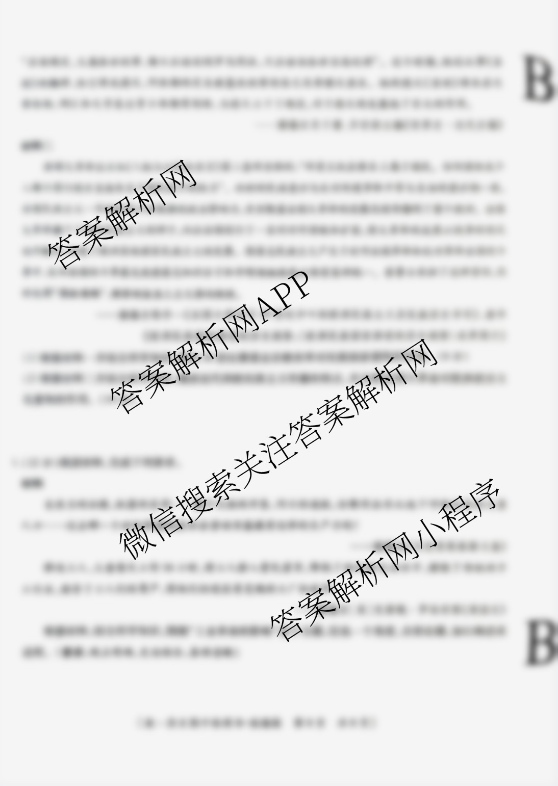 - [高一][益卷]·陕西省2024-2025学年度第二学期期中检测(试卷类型:B)政治答案