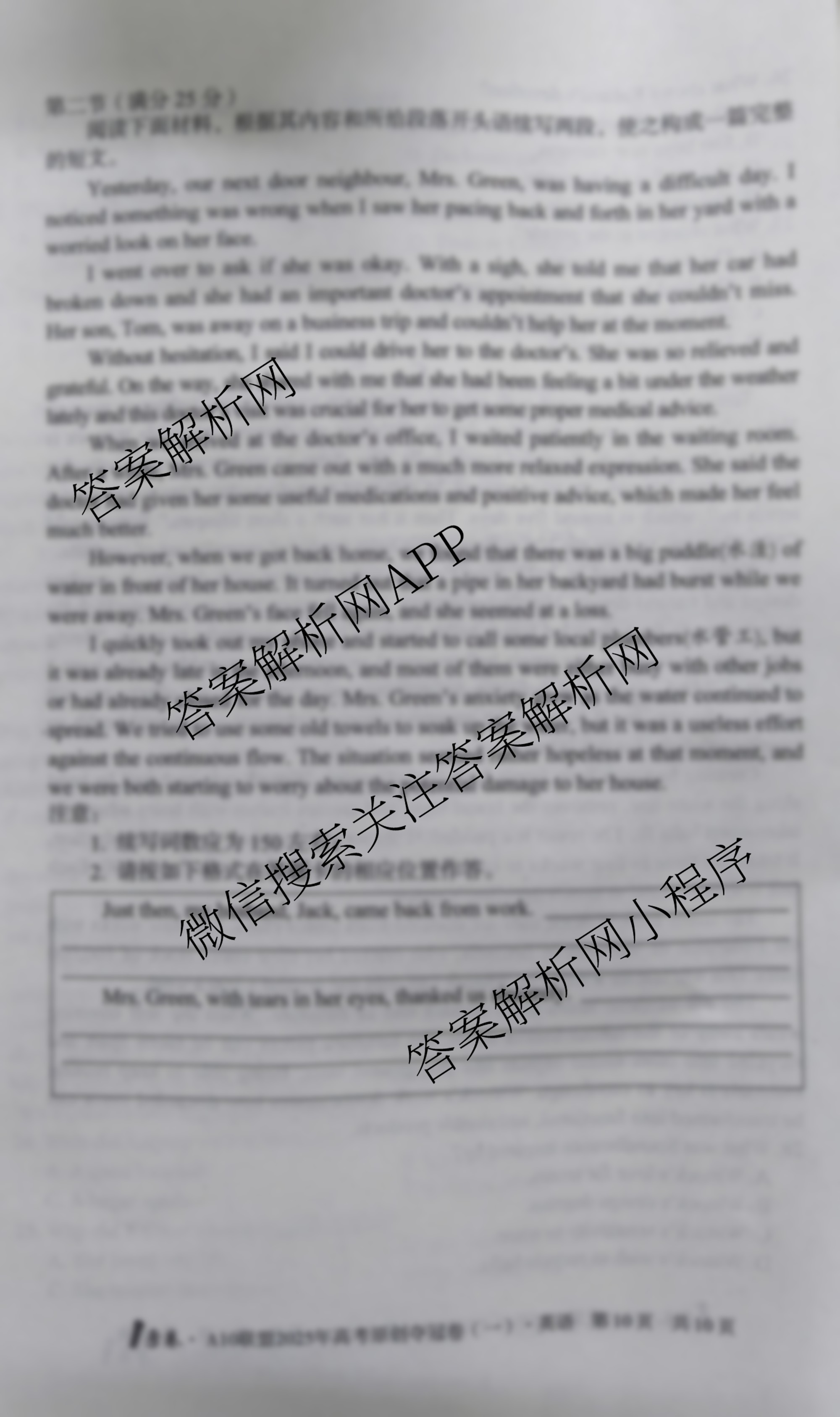 - [1号卷]A10联盟2025年高考原创夺冠卷(一)英语答案