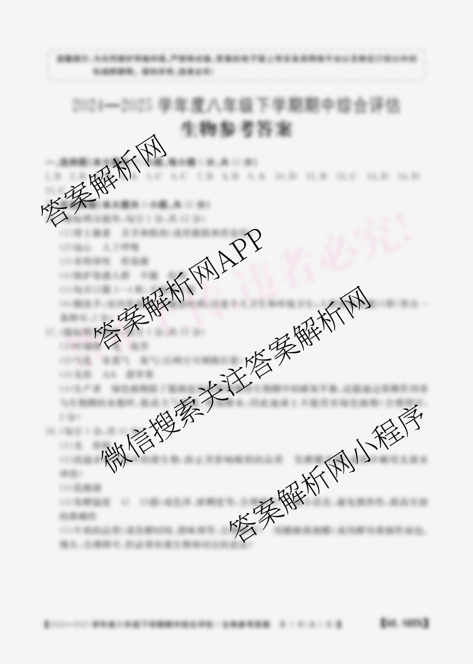 - 2024~2025山西省学年度(八年级)下学期期中综合评估[6L-SHX]生物答案
