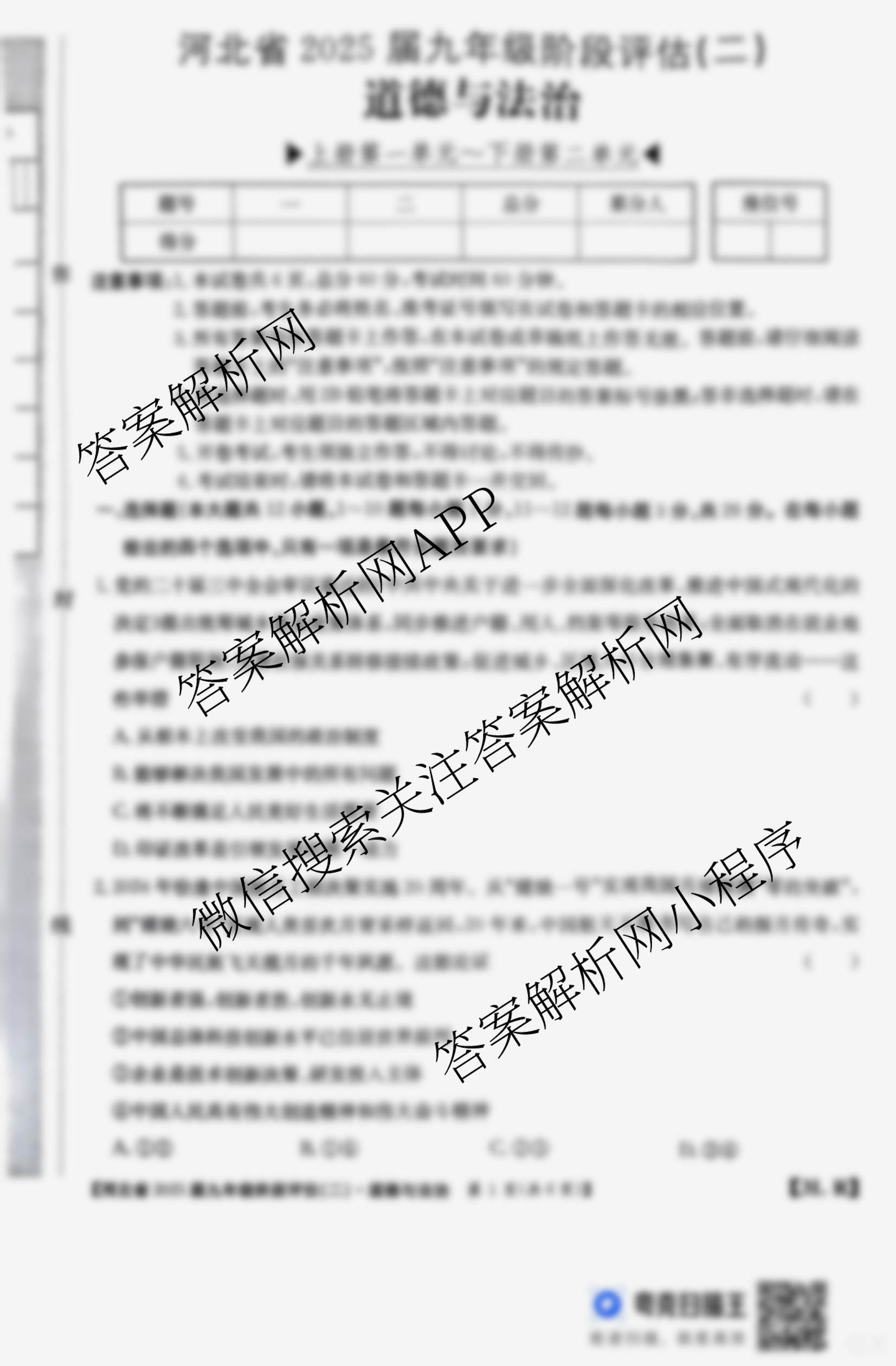 河北省2025届九年级阶段评估(二)[3L]道德与法治(R)试题,目前学英语报答案已经汇总了河北省2025届九年级阶段评估(二)[3L]道德与法治(R)试题的各科答案和试卷,获取更多初中阶段诊断答案解析,请在关注本站。