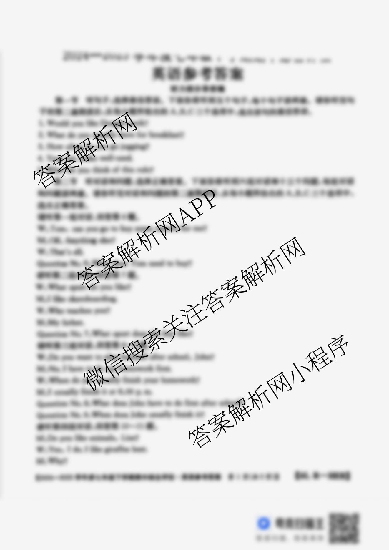 - (七年级)河北省2024~2025学年度下学期期中综合评估[6L-HEB]英语(R)答案
