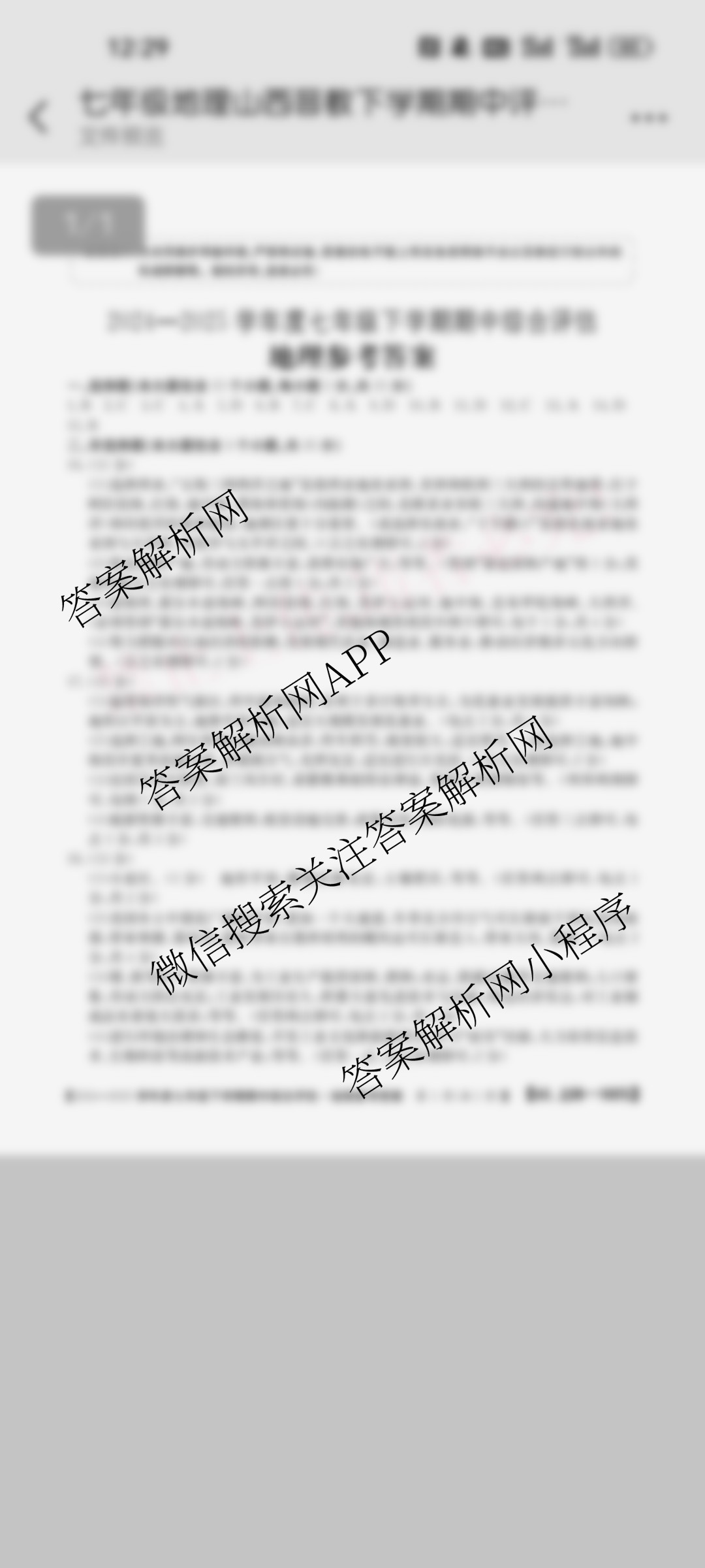 - 山西省2024~2025学年度[七年级]下学期期中综合评估[6L-SHX]地理(JJB)答案