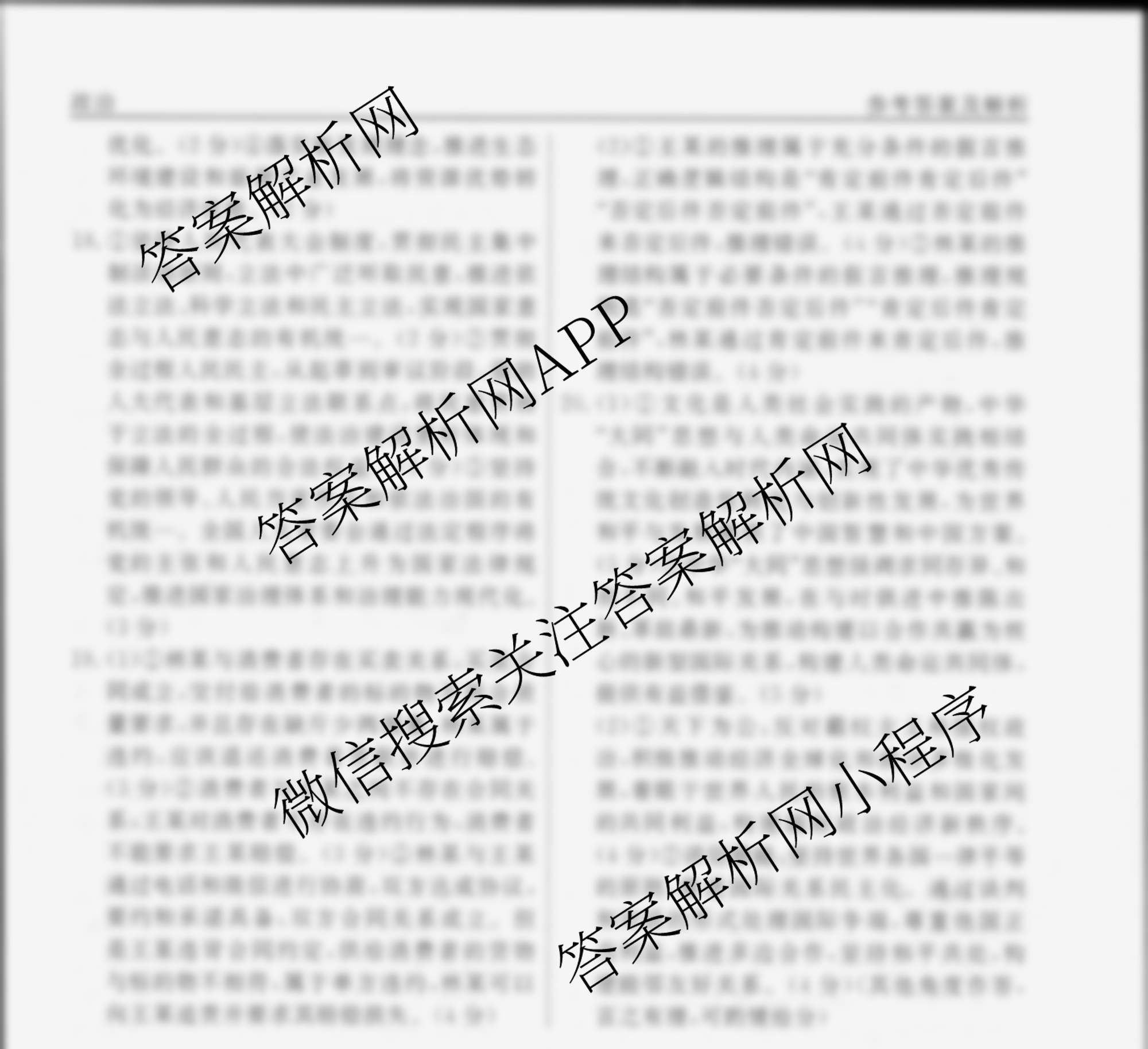 衡水名师卷高考模拟调研卷 2025年普通高等学校招生全国统一考试模拟(四)4政治(空心菱形)答案