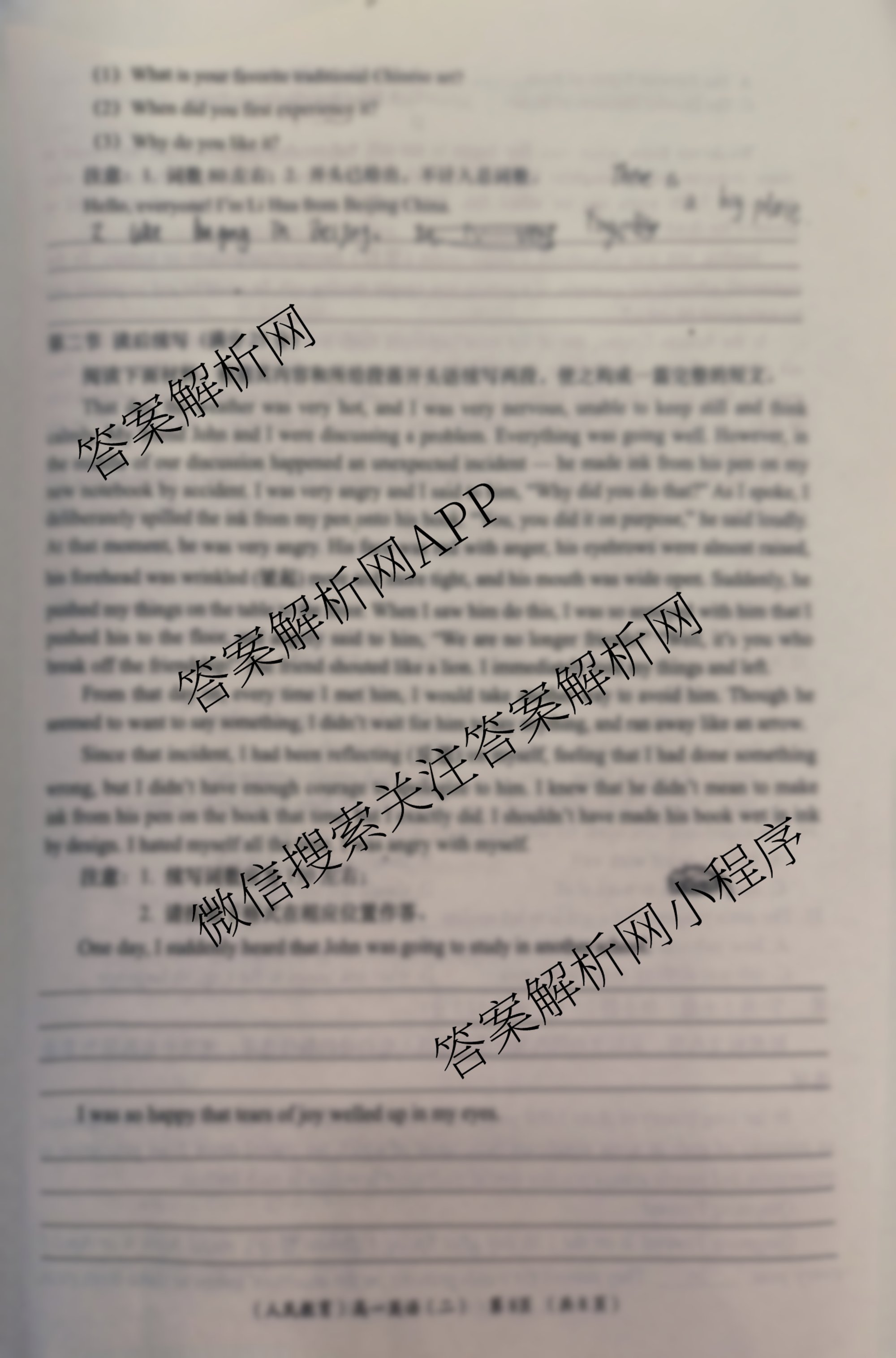 - 2024-2025(高一)学年度第二学期[周期学业能力评鉴](二)英语(人民教育版)答案