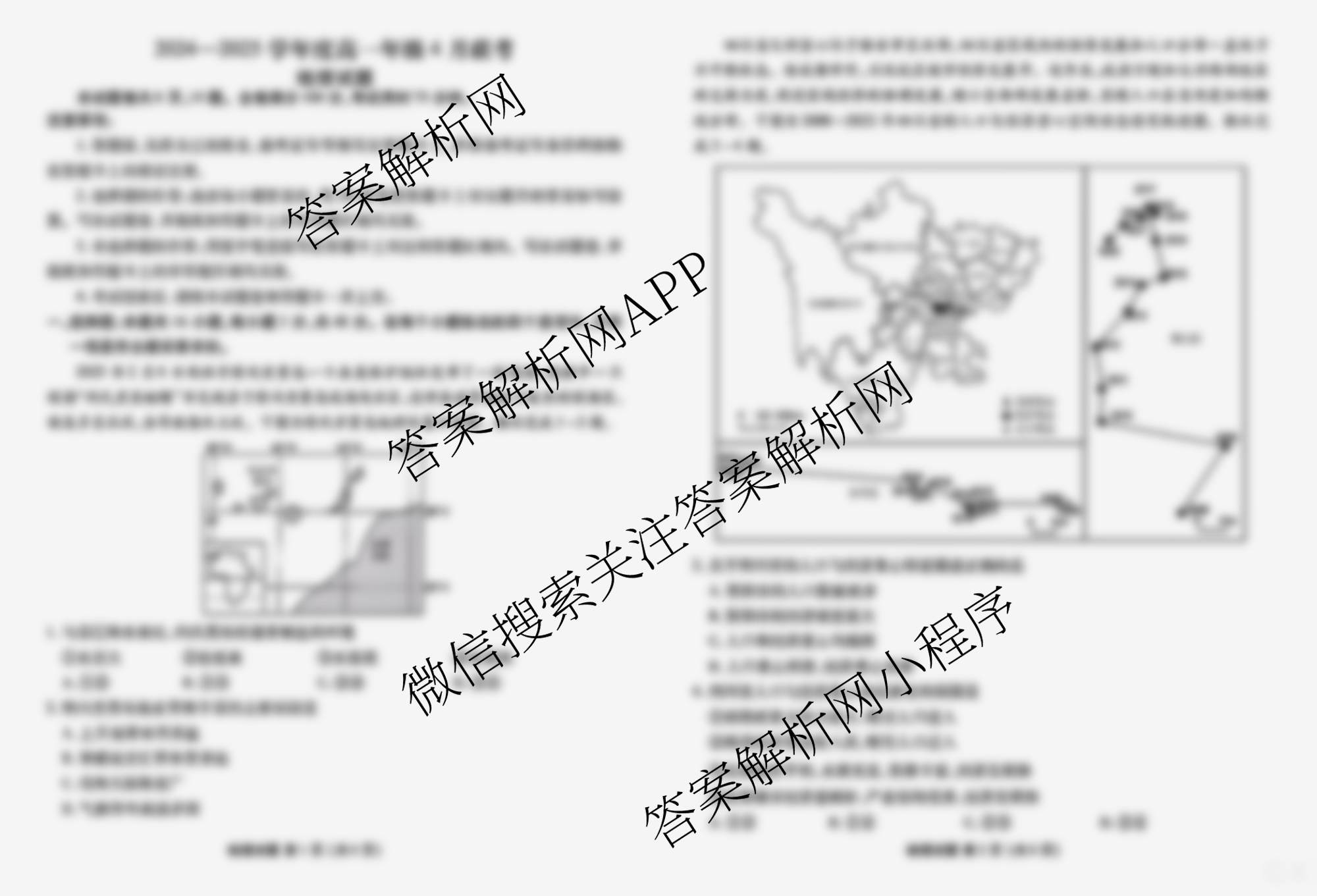 - 衡水大联考2024-2025学年度[高一]年级4月联考地理答案