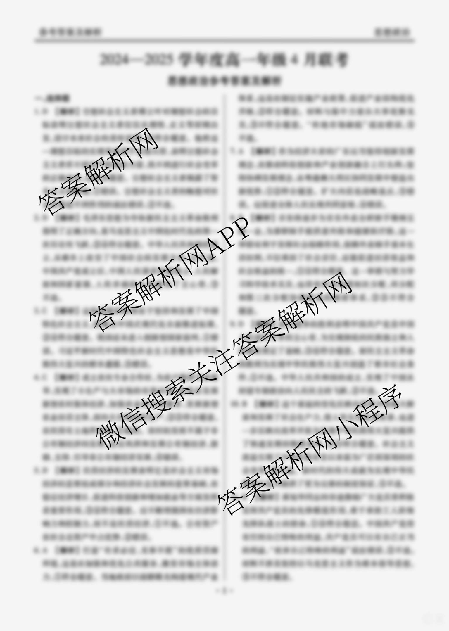 - 2024-2025衡水大联考学年度[高一]年级4月联考政治答案