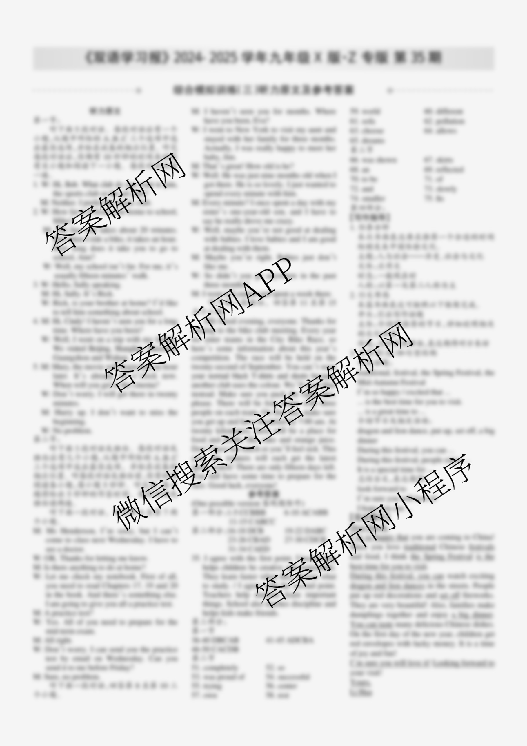 2024-2025学年下学期 双语学习报 九年级 X版·Z专版第35期答案,目前学英语报答案已经汇总了2024-2025学年下学期 双语学习报 九年级 X版·Z专版第35期答案的各科答案和试卷,获取更多学生双语报答案解析,请在关注本站。