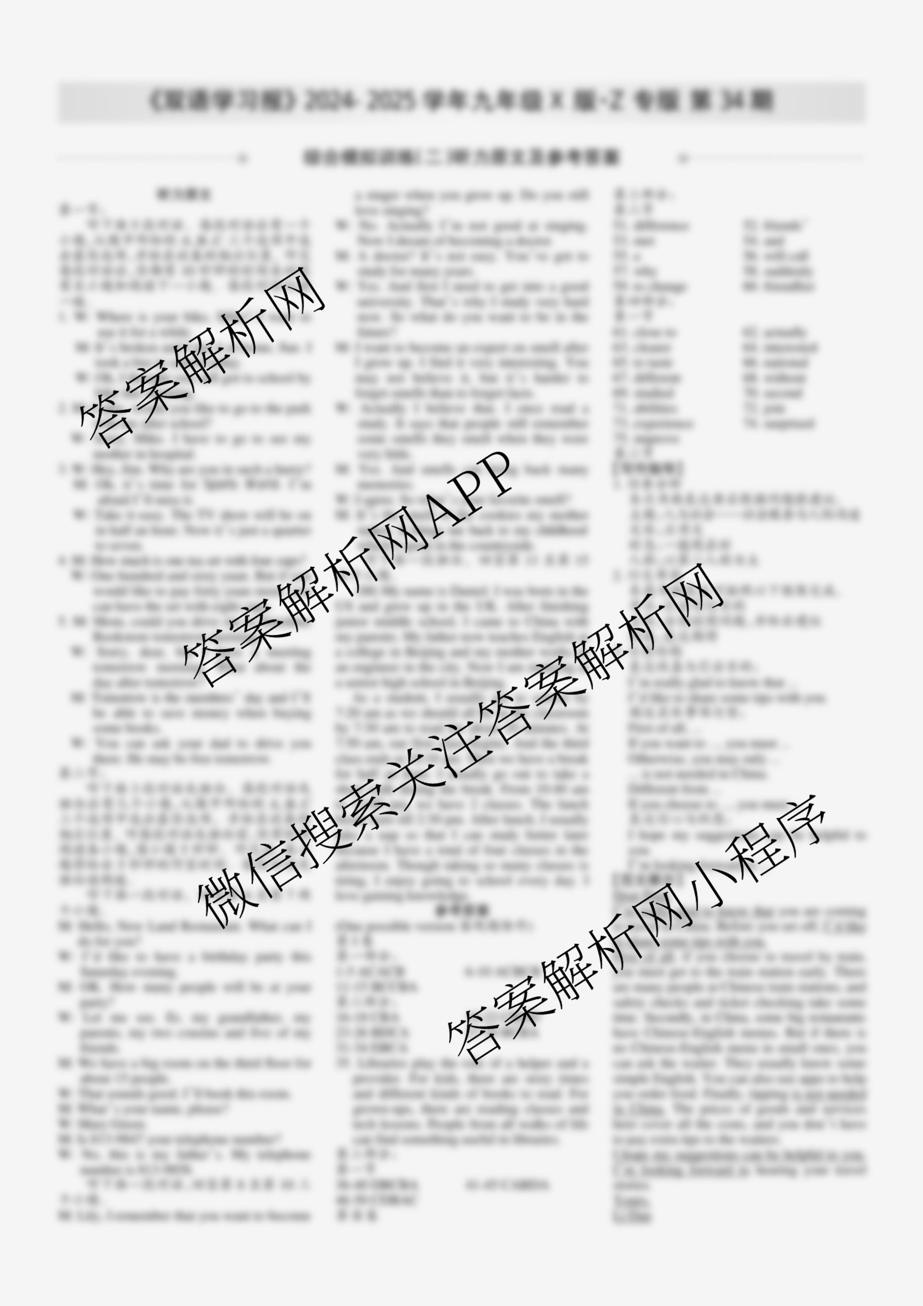 2024-2025学年下学期 双语学习报 九年级 X版·Z专版第34期答案,目前学英语报答案已经汇总了2024-2025学年下学期 双语学习报 九年级 X版·Z专版第34期答案的各科答案和试卷,获取更多学生双语报答案解析,请在关注本站。